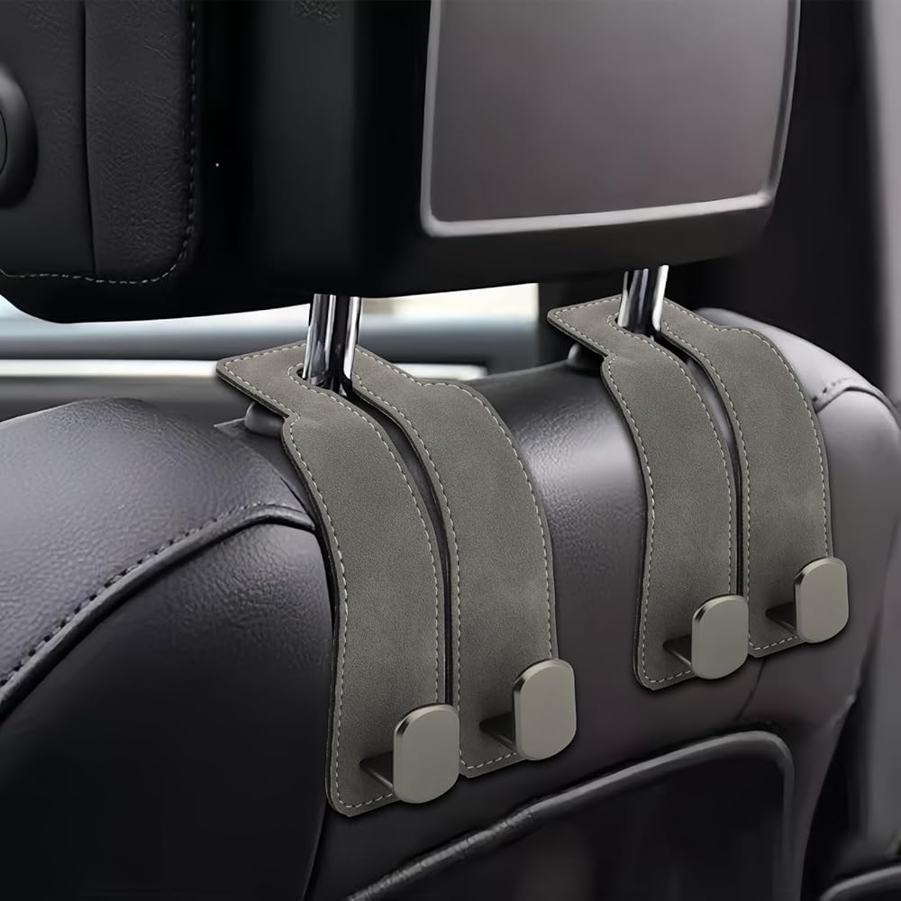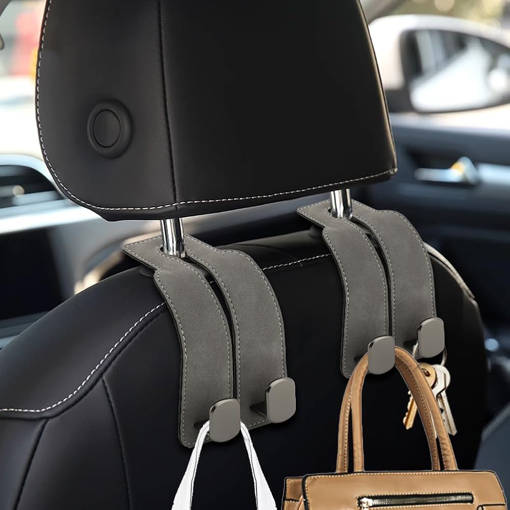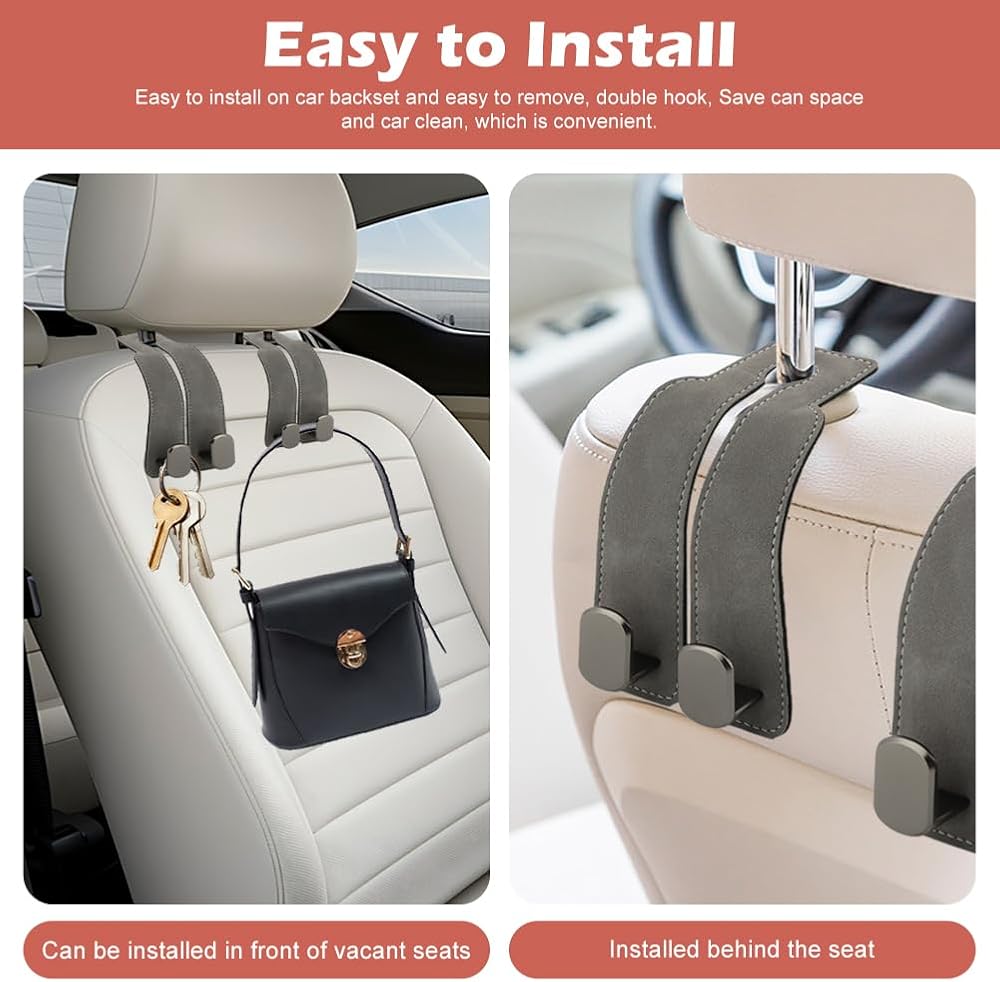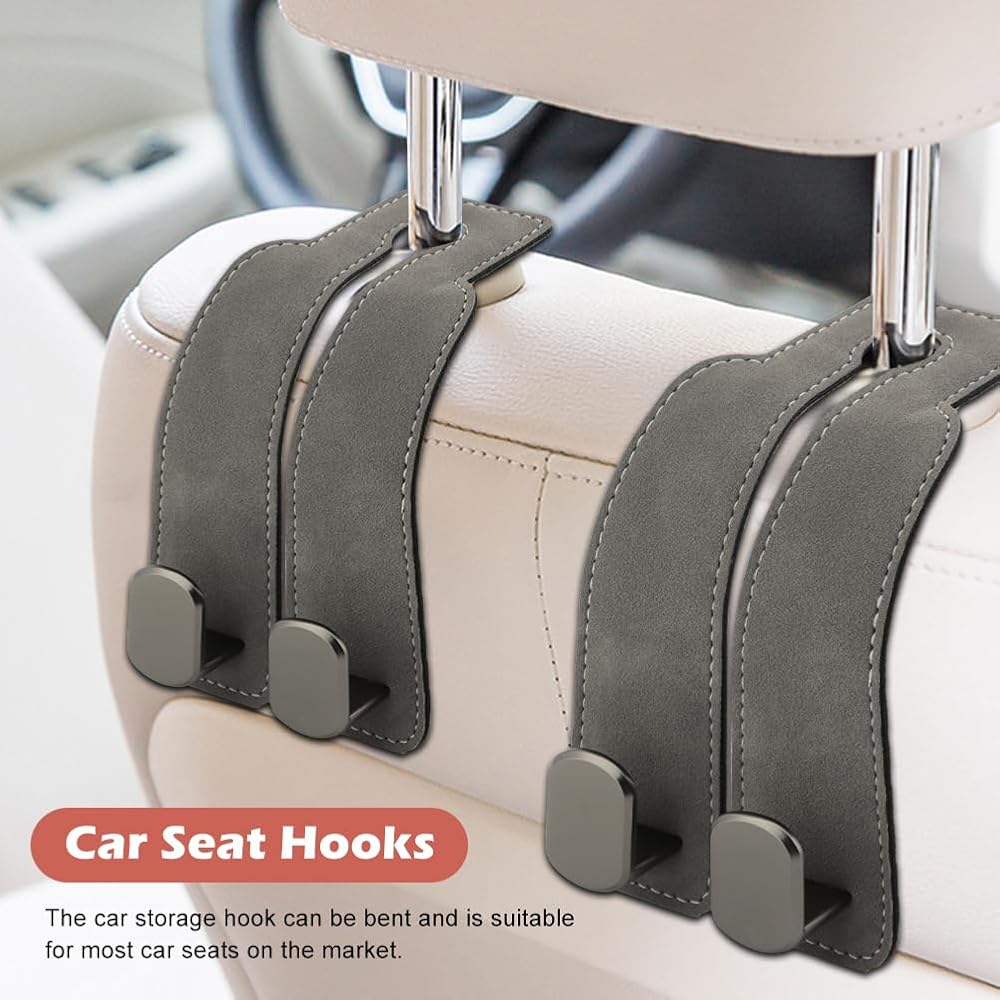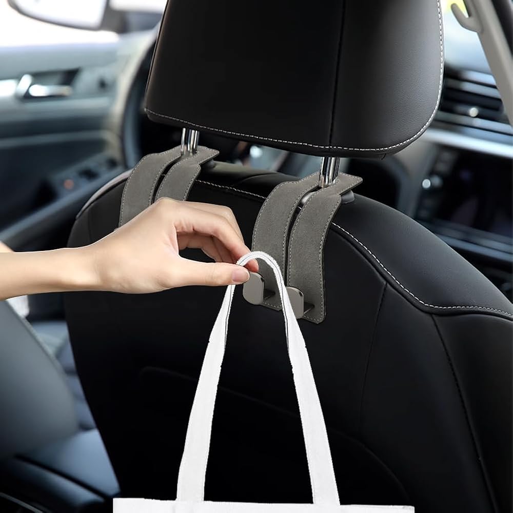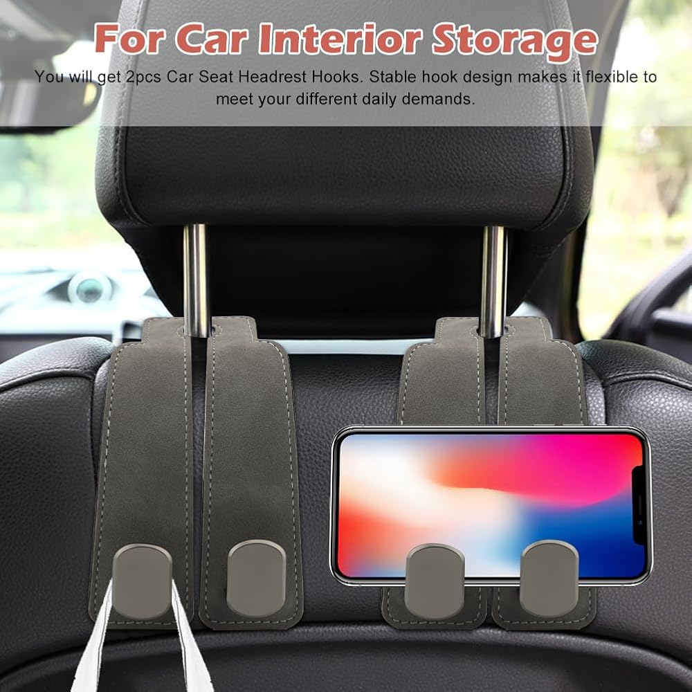【BENDABLE DESIGN】The car seat back headrest hooks are made of durable aluminium alloy + suede microfiber.The car storage hook can be bent and is suitable for most car seats on the market. The practical interior accessory for most cars, suvs and trucks.
