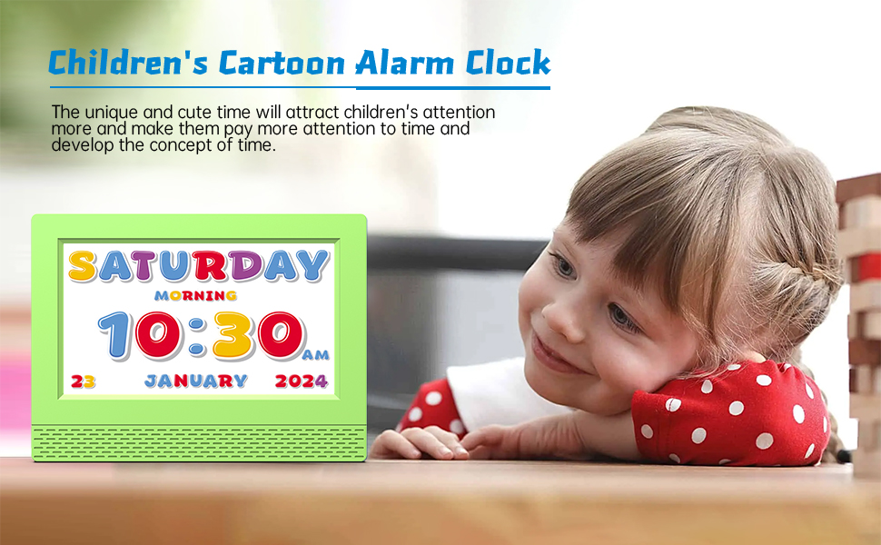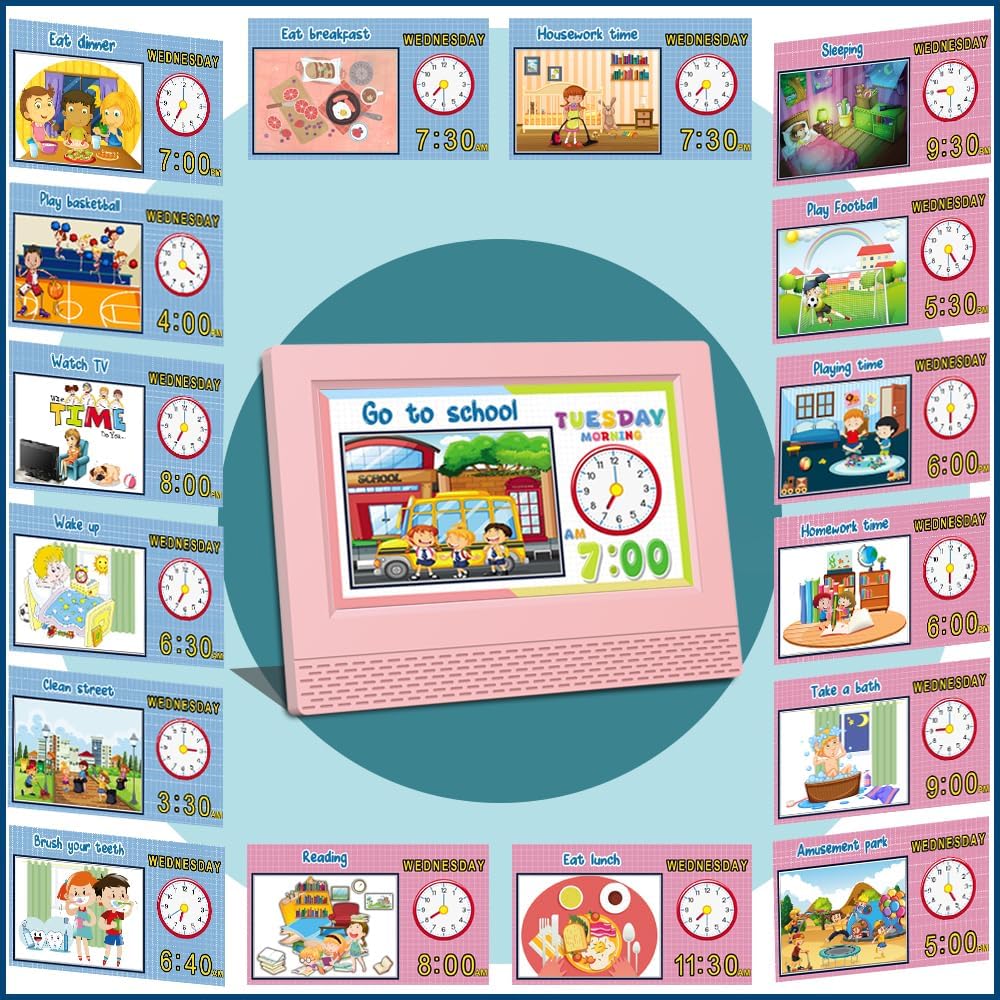 🌟🌟【ساعة منبه رقمية مثيرة للاهتمام】-- ستساعدك ساعة الجدول الزمني أنت وأطفالك على ضبط 5 ساعات منبه يومية و12 ساعة منبه محددة للمشهد. عندما يرن المنبه، ستعرض الساعة صور مشهد كرتوني وبث صوتي محدد، مما يسمح للأطفال بمعرفة ما يجب القيام به في الوقت الحالي، مما يشكل عادة جيدة.