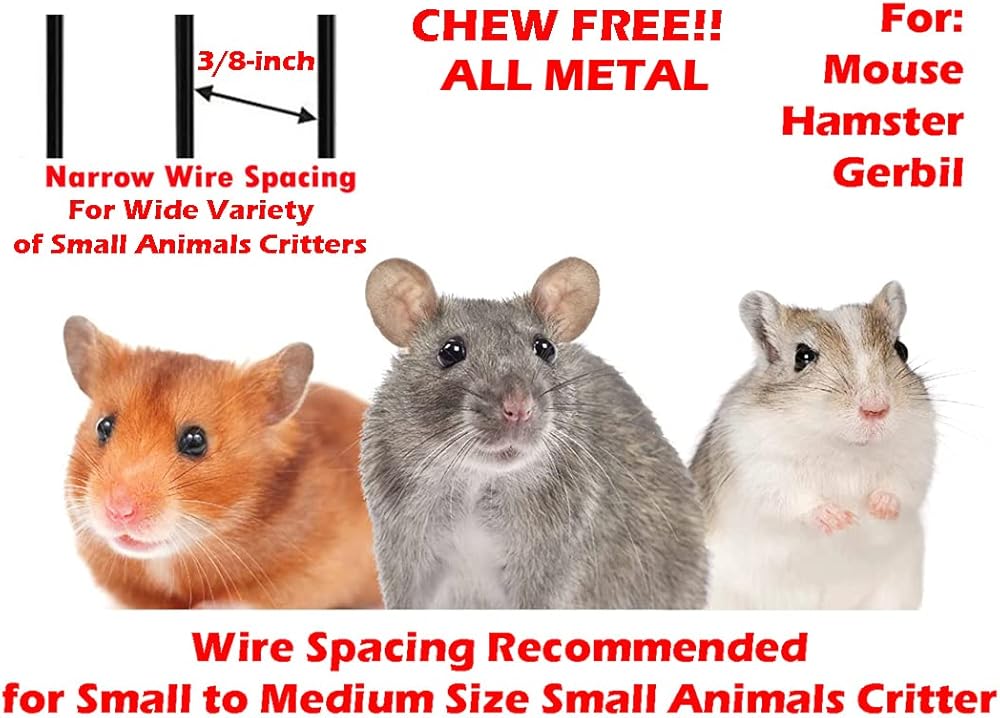 【تباعد سلكي ضيق 3/8 بوصة】 يمنع الهروب والالتصاق؛ مناسبة للحيوانات الصغيرة من الأطفال إلى البالغين، مناسبة لشينشيلا والقوارض والفئران والهامستر القزم وخنزير غينيا والأرنب والفئران والفأر والهامستر والجربوع وطائرة السكر الشراعية وغيرها من الحيوانات الصغيرة