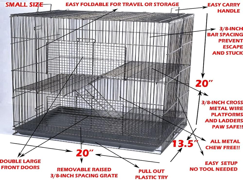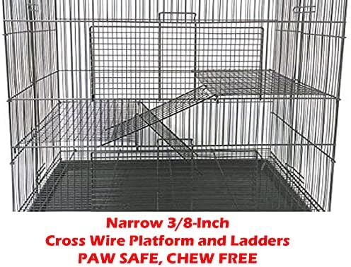 【الحجم: 20 بوصة × 13.5 بوصة × 20 بوصة ارتفاع】جسم قفص سلكي خالٍ من المضغ مكون من 3 مستويات مع مسافة شريط ضيقة مقاس 3/8 بوصة للأطفال الصغار والكبار من الحيوانات الصغيرة والمخلوقات وأرفف سلكية متقاطعة بمقدار 3/8 شريطًا متقاطعًا وسلالم، مخلب آمنة