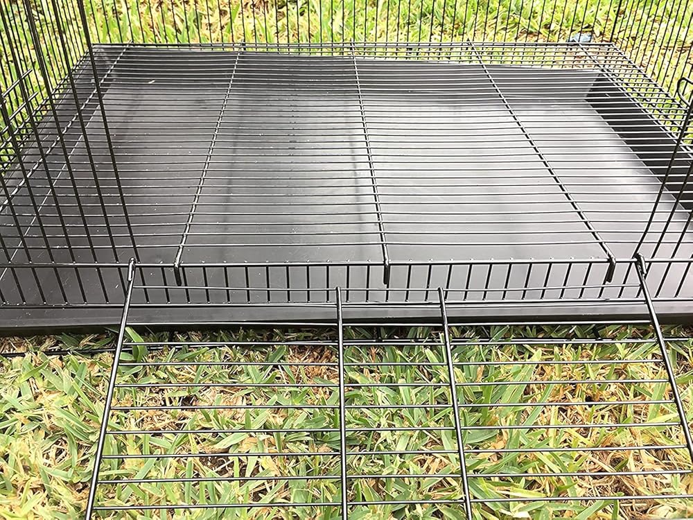 【بابان أماميان】 مع أرضية شبكية مرتفعة بسلك قابل للإزالة مقاس 3/8 بوصة؛ مع مقبض سهل الحمل؛ 【صينية سفلية تنزلق للخارج】 لسهولة التنظيف؛ لمسة نهائية مطلية بالإيبوكسي الآمن على الحيوانات