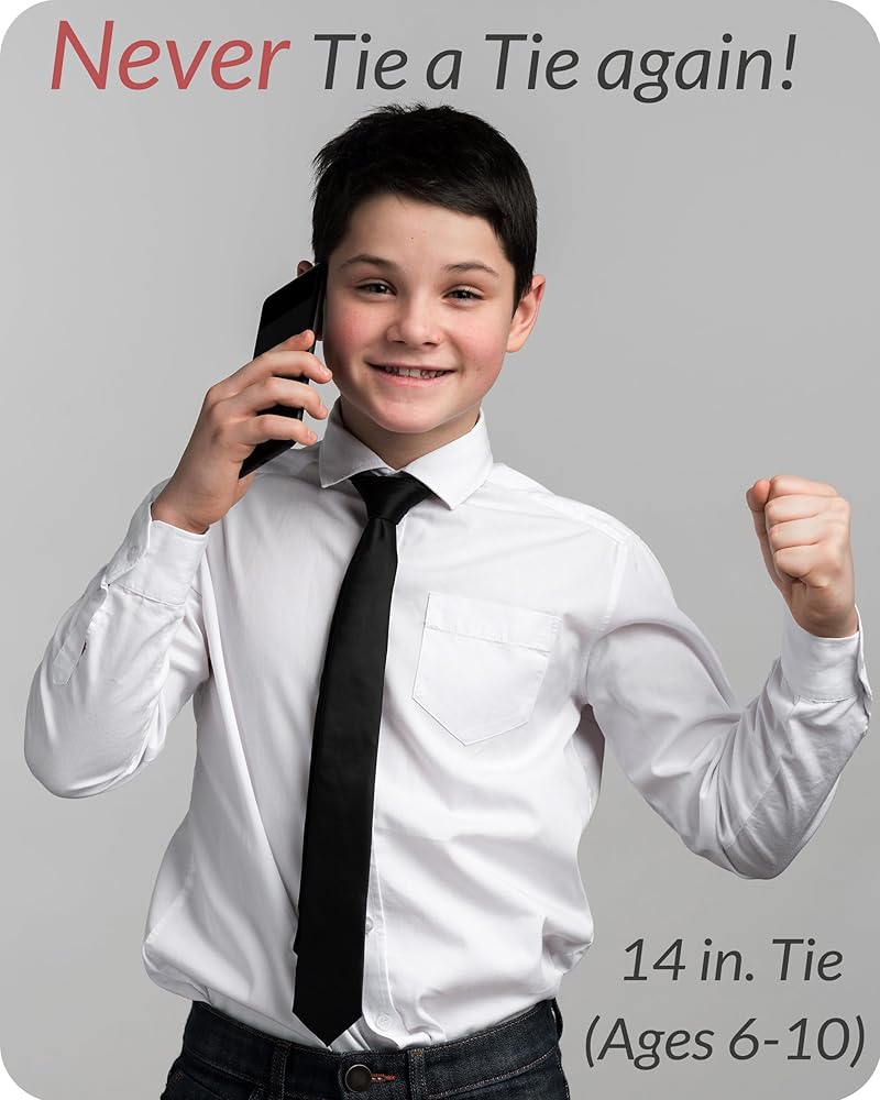 مقاس محدد مهم: يوصى بمقاس 8 بوصة للأولاد من سن 0 إلى 2 سنة. مقاس 11 بوصة مثالي للأولاد من سن 3 إلى 5 سنوات. مقاس 14 بوصة مثالي للأولاد من سن 6 إلى 10 سنوات. مقاس 17 بوصة يناسب الأولاد من سن 11 إلى 15 عامًا. أكبر من 15 بوصة يجب أن يأخذ في الاعتبار المشبك الرجالي على ربطة العنق.