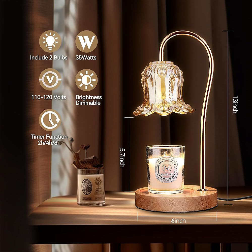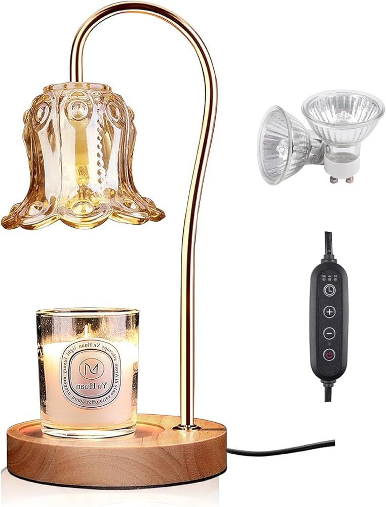 مصباح تسخين الشموع، مصباح شمعة خافت للضوء مع مؤقت، متوافق مع شموع الجرة الصغيرة والكبيرة، مصباح شمعة كهربائي على شكل زهرة مع لمبتين لديكور المنزل في عيد الميلاد