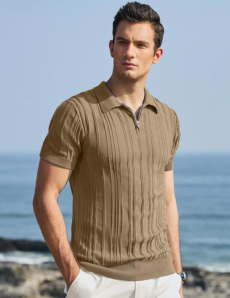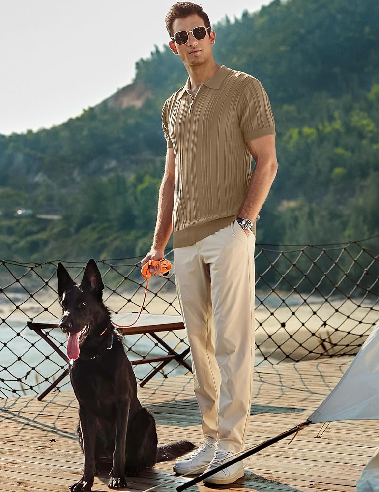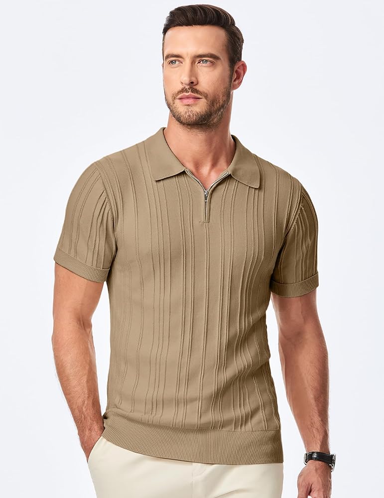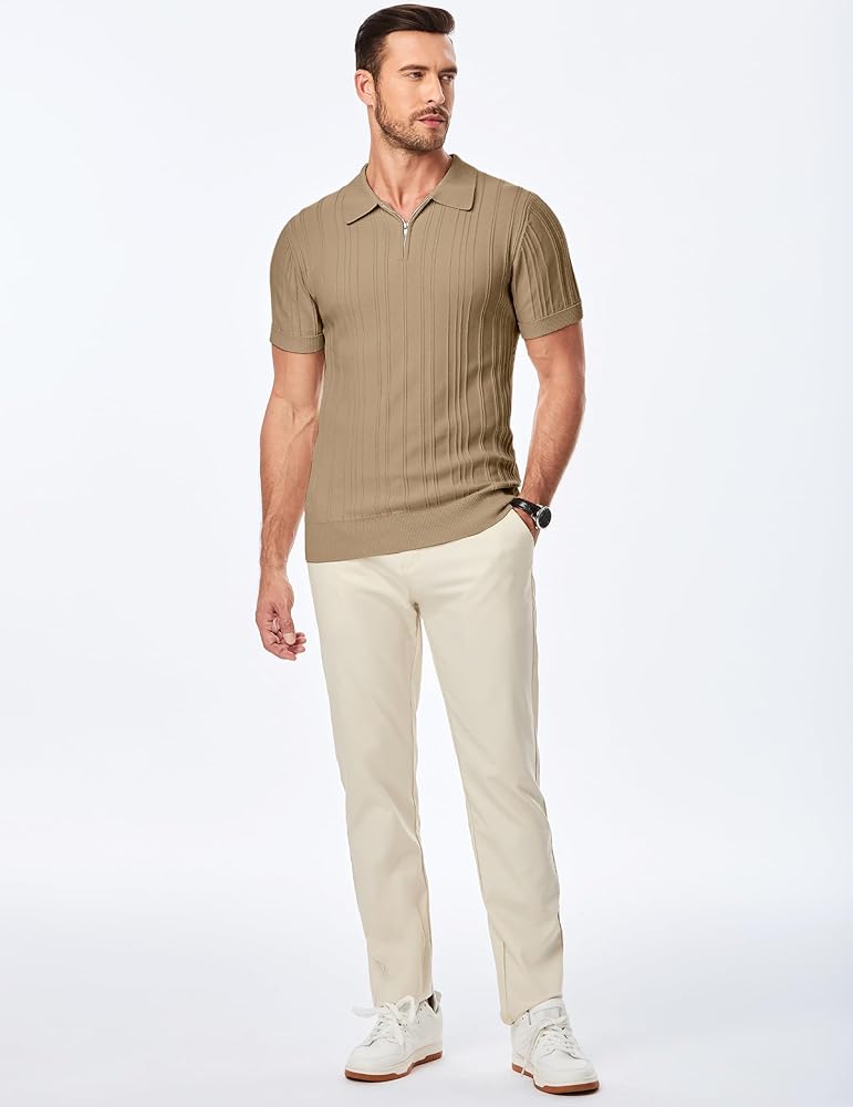 قميص بولو كاجوال - يضيف السحاب المعدني 1/4 لمسة فريدة إلى نمط قميص البولو الكلاسيكي. يختلف مزيج الخطوط العمودية المرتفعة عن الأنماط التقليدية العادية الأخرى، فهو أكثر تميزًا وعصرية. تتميز الأكمام القصيرة للرجال أيضًا بميزات كلاسيكية وعملية: ياقة مطوية، وأساور أكمام ذات أربطة مرنة عالية، وحاشية.