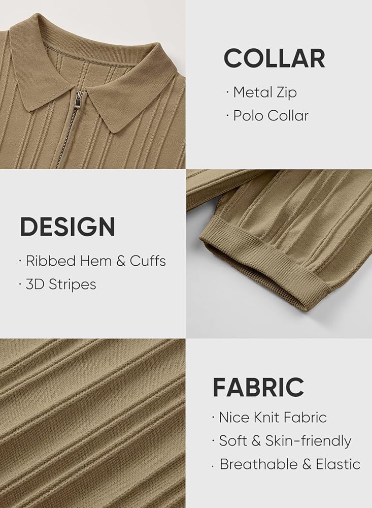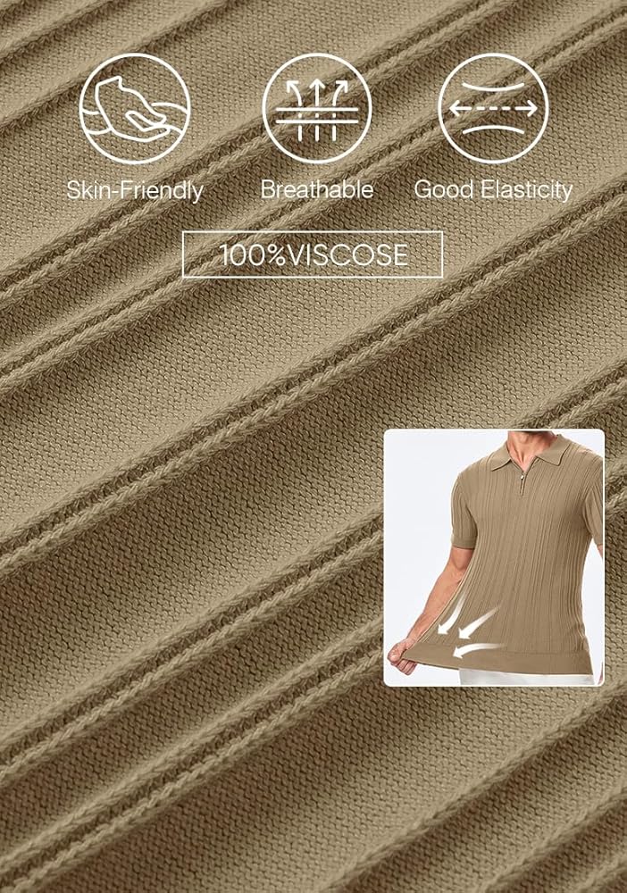 نسيج محبوك مريح - قميص بولو بسحاب مصنوع من نسيج الفسكوز الصديق للبشرة والمتين. تضيف الخياطة الرائعة لمسة من الفخامة، بينما يسمح التمدد الجيد بسهولة الحركة دون التنازل عن الأناقة.