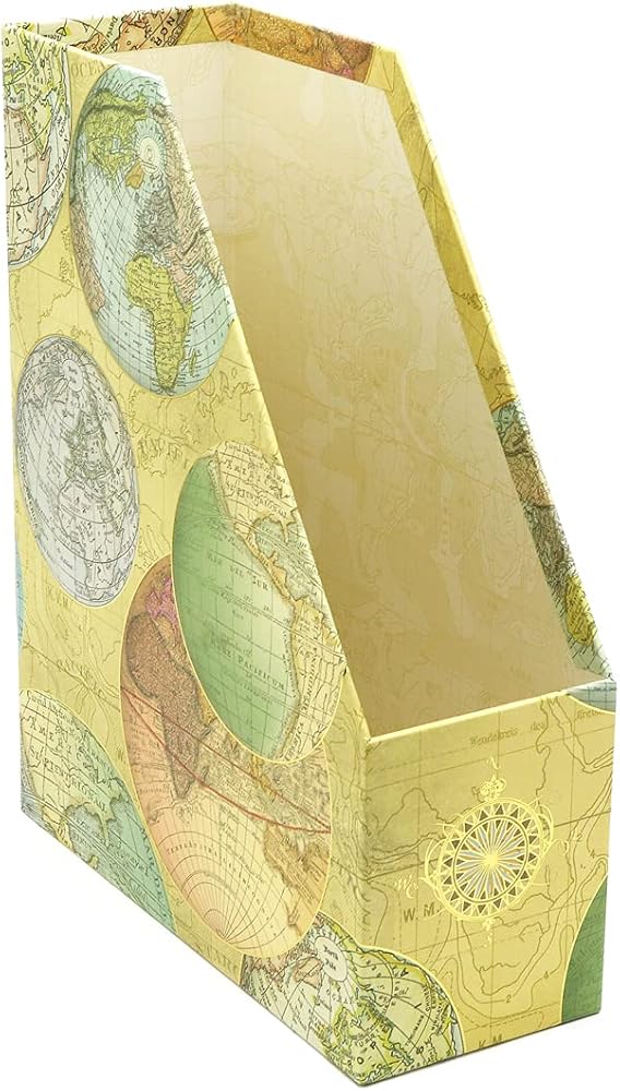 Bring the world into your workspace. Vintage look standing storage with metal label frame keeps magazines, newsletters, files, or manuals visible and handy.
