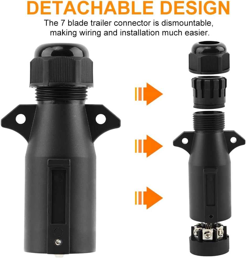 【WATERPROOF DESIGN】You will get 1pc RV 7 Pin Trailer Plug. The car trailer plug is the perfect protective accessory for car wiring.The outermost insulating material can ensure that the car trailer plug can be used normally in bad weather such as rain and snow.