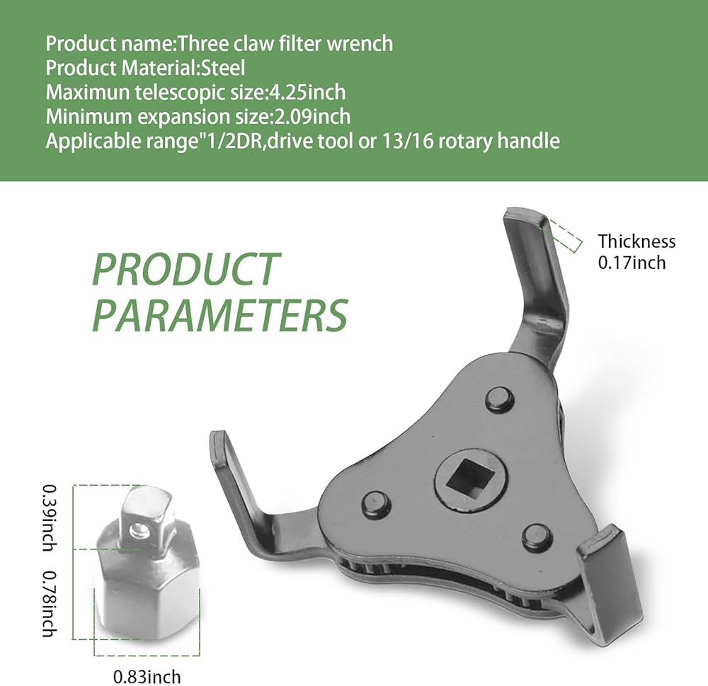 Fastening Function: The three claws of this car oil filter wrench are adjustable, and the design uses the principle of leverage to twist, helping you twist the strongest filter on the vehicle or in a small space and install it in a shorter time.