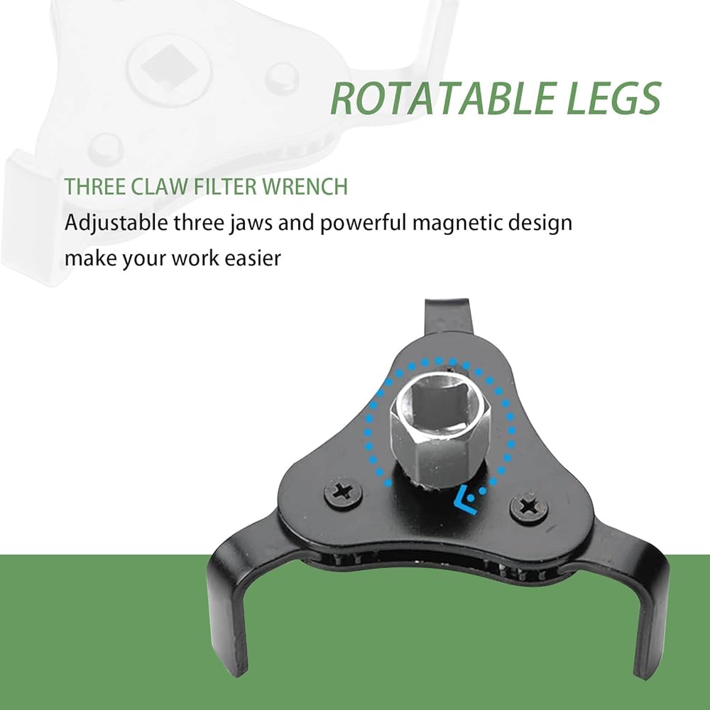 Tippwoo 1 PC Car Oil Filter Wrench, Heavy Duty Three-claw Design, Vehicle Oil Filter Wrench Maintenance Accessories, Universal Adjustable Automotive Oil Filter Wrench for Most Cars (Black & White)