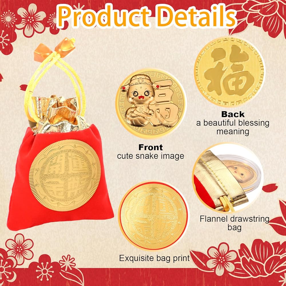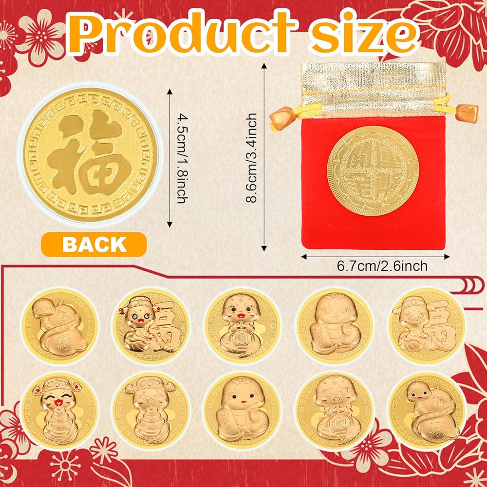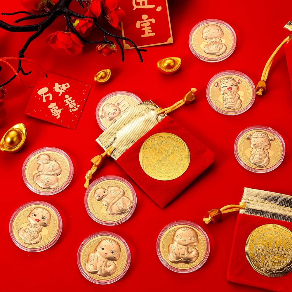 العملات التذكارية لعام الأفعى: هذه العملات التذكارية الصينية للأبراج مصنوعة من ورق رقائق الذهب عالي الجودة وتأتي مع حافظات واقية. إنها مقاومة للتآكل والبهتان، ومتينة، ويمكن استخدامها بشكل متكرر لفترة طويلة. إنها تمثل هدايا ممتازة للعام الجديد، متمنيًا لأحبائك عامًا أكثر إشراقًا - الثروة والرخاء، والصحة الجيدة، وعيد الربيع المبهج، والثروة الوفيرة، والحظ السعيد، والنجاح الأكاديمي.