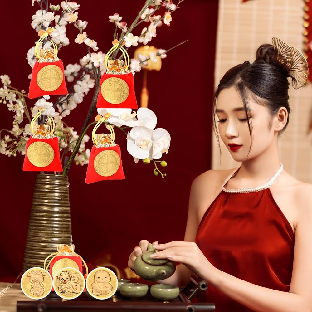 هدايا العام الجديد 2025: تعتبر لوازم الديكور للعام الصيني الجديد مثالية كهدايا رأس السنة الجديدة لأصدقائك وعائلتك وجيرانك وزملائك والمزيد. من المؤكد أن أولئك الذين يحصلون على هذه البركات سيشعرون بسعادة استثنائية. تعتبر الحقائب ذات الرباط الأحمر مثالية أيضًا للاقتران مع بعض الهدايا الصغيرة مثل المظاريف الحمراء للسنة الصينية الجديدة. التعبير عن رغبات السنة الجديدة لأحبائك.