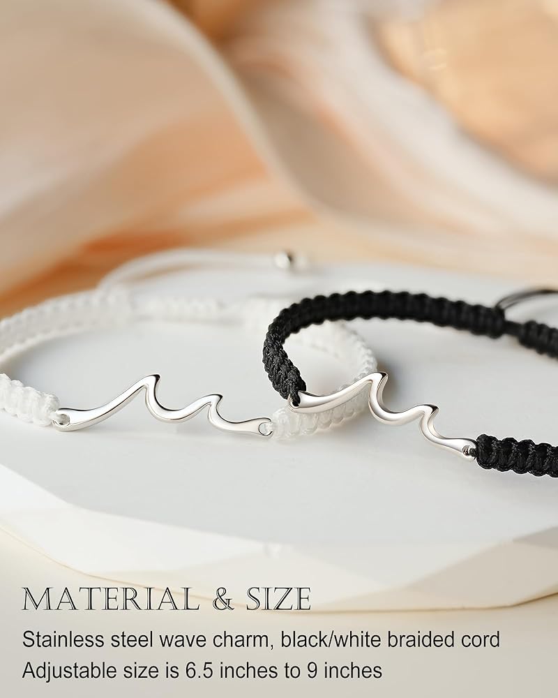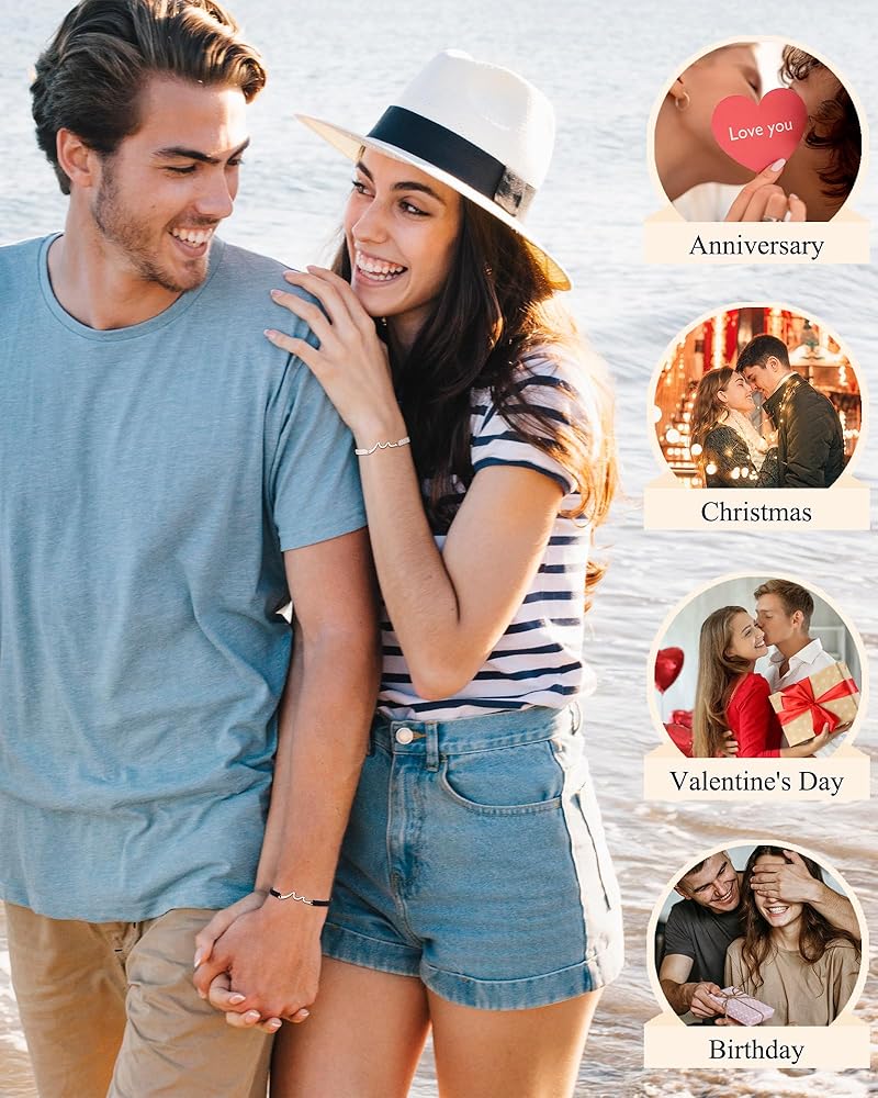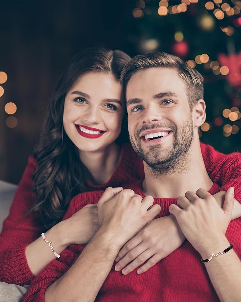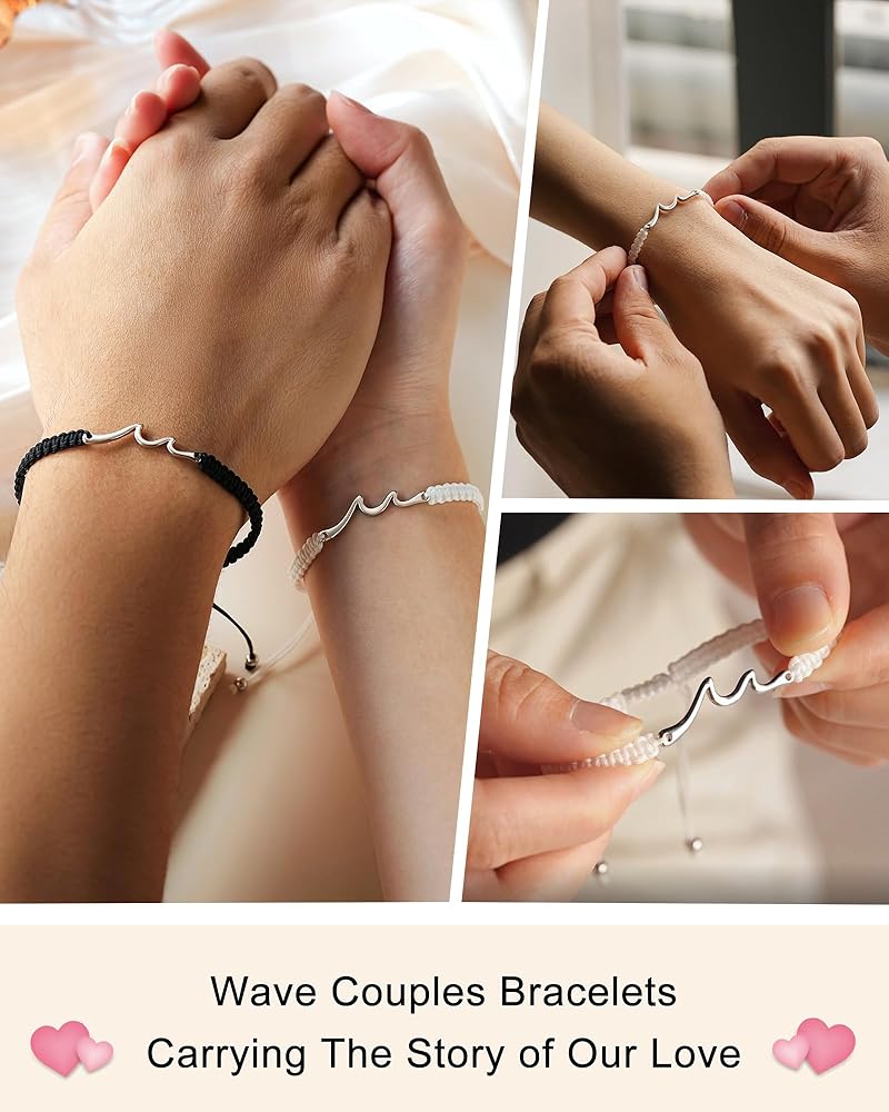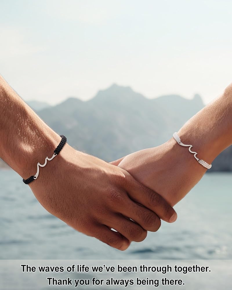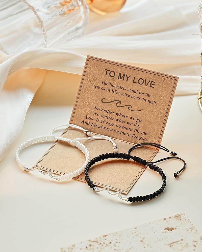 [هدايا ذات معنى له] - "الأساور تمثل موجات الحياة التي مررنا بها." ربما لم تكن علاقتكما دائمًا سلسة وكان هناك خلافات وسوء فهم، ولكن في النهاية، سينتصر الحب على كل شيء! تمثل محتويات البطاقة اعترافك ووعودك الصادقة