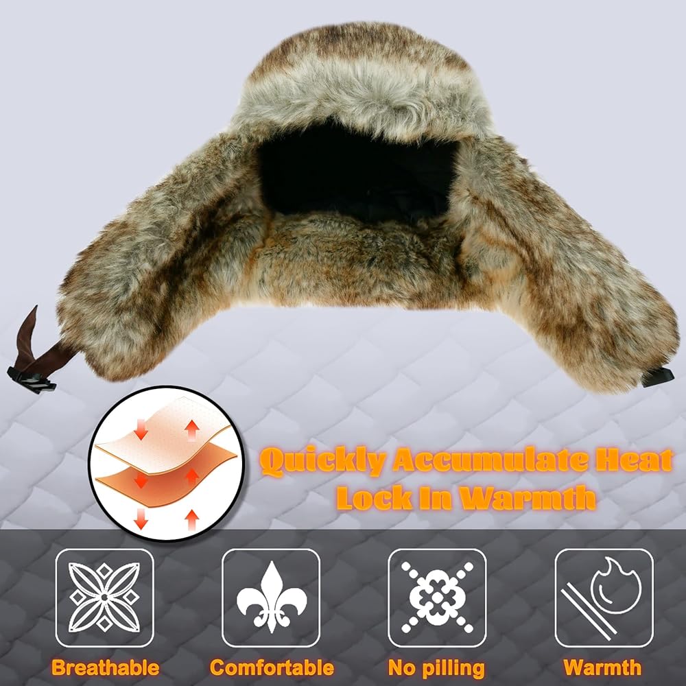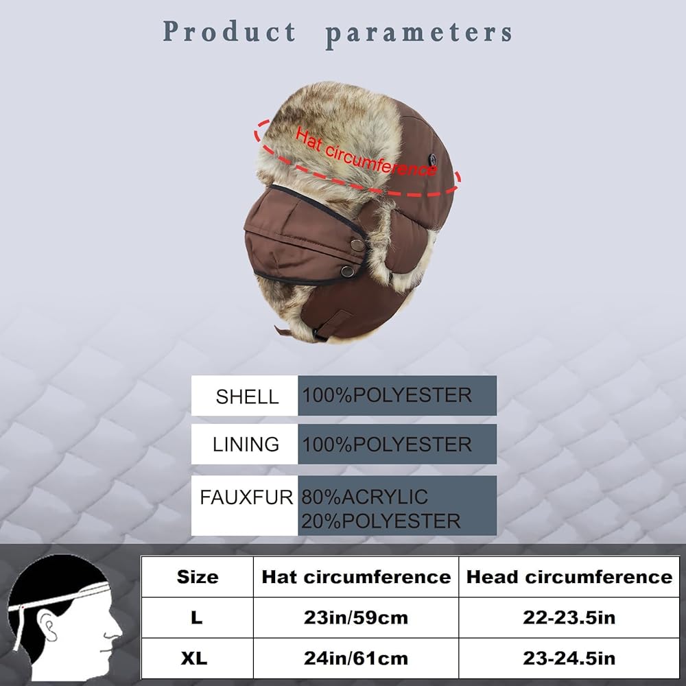 القبعة مصنوعة باستخدام فراء صناعي سميك وناعم للغاية مع طبقة عازلة. مضمونة للحفاظ على دفء رأسك في ظروف أقل من الصفر. مع غلاف خارجي عالي الجودة مقاوم للطقس، تحمي هذه القبعة للجنسين من الثلج والمطر والصقيع، حتى تتمكن من المغامرة دون قلق.