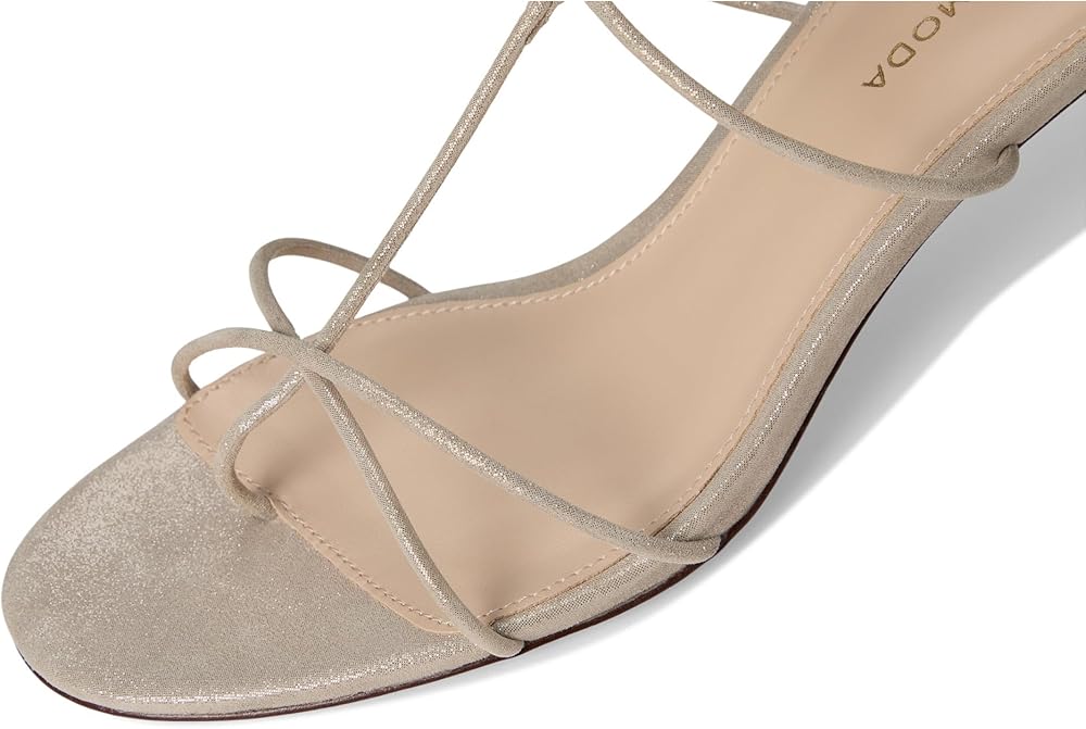 Elegant thin tubular straps wrap around your foot with a toe thong and adjustible ankle strap to create a nice fit.