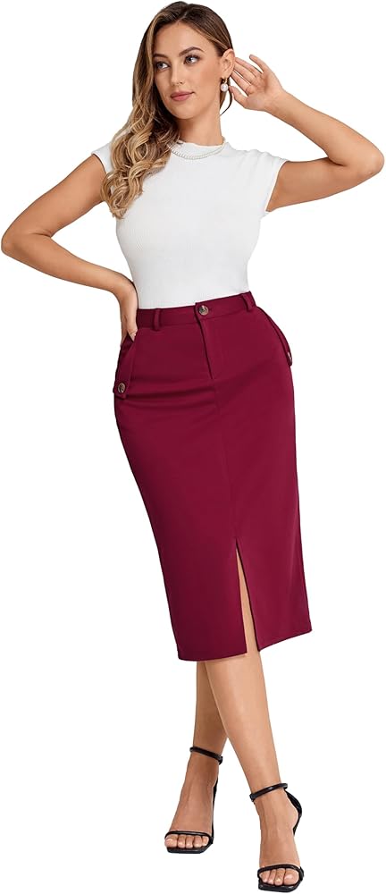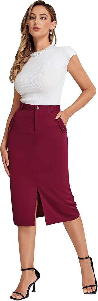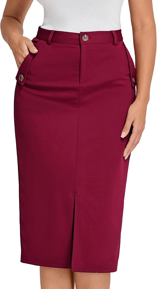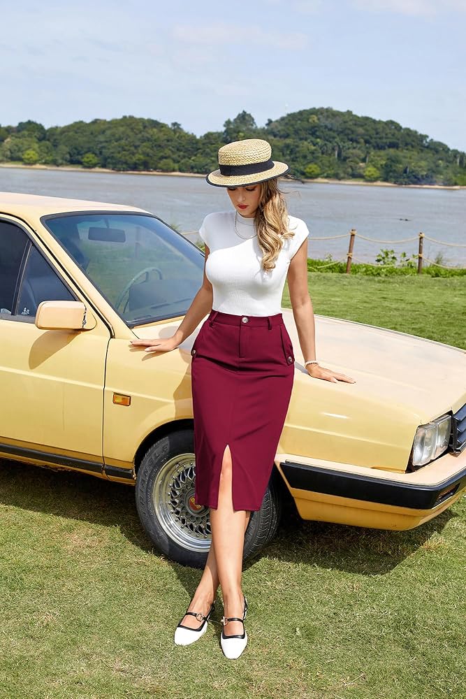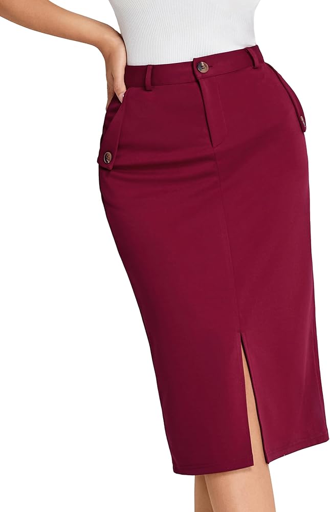 منحنيات بارزة: تتميز هذه التنورة بالقلم الرصاص بقصة مستقيمة وتصميم عالي الخصر، وهي تحتضن منحنيات جسمك دون عناء. تظهر التنورة بطول الركبة مع فتحة، بعض البشرة مع الحفاظ على الأناقة، وتضيف جاذبيتك الأنثوية وتخلق مظهرًا أنيقًا وجذابًا بمهارة