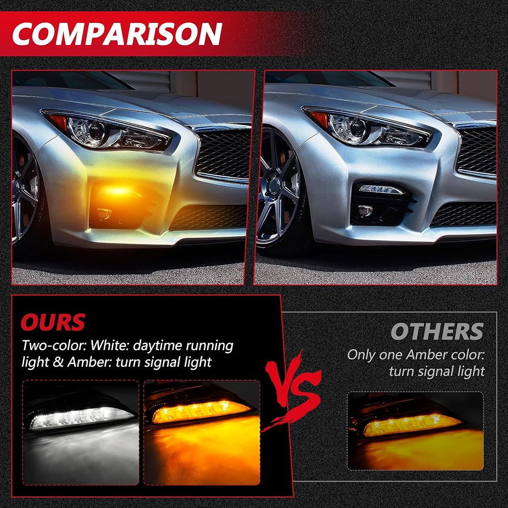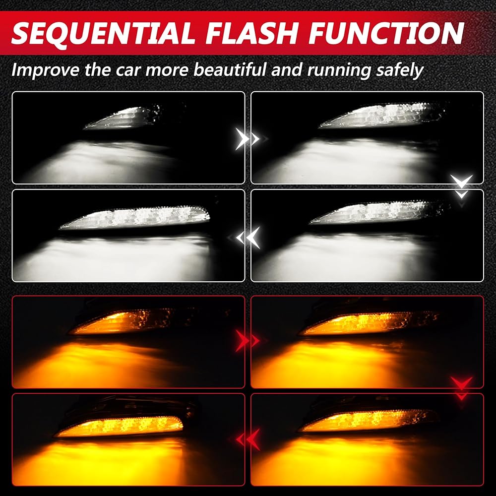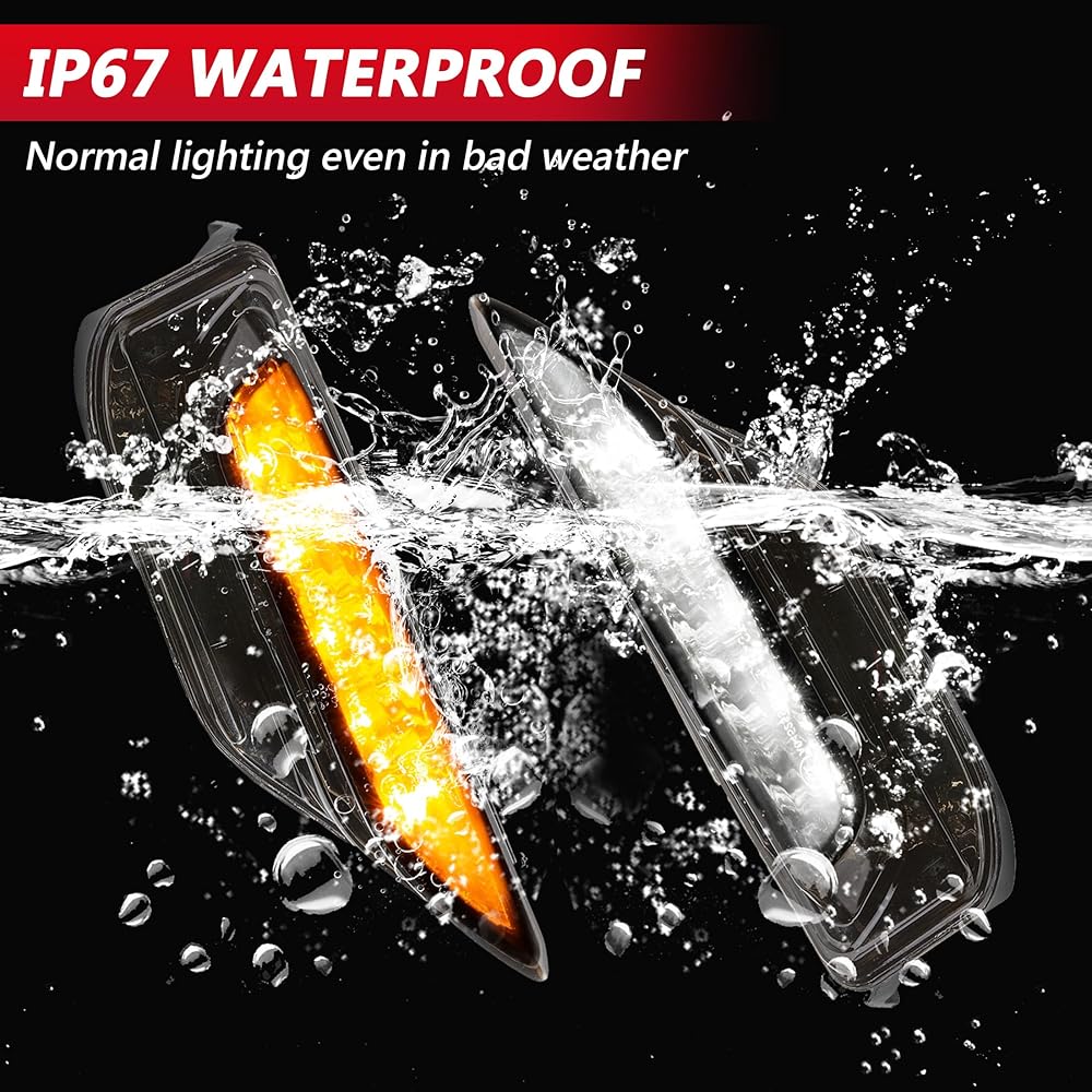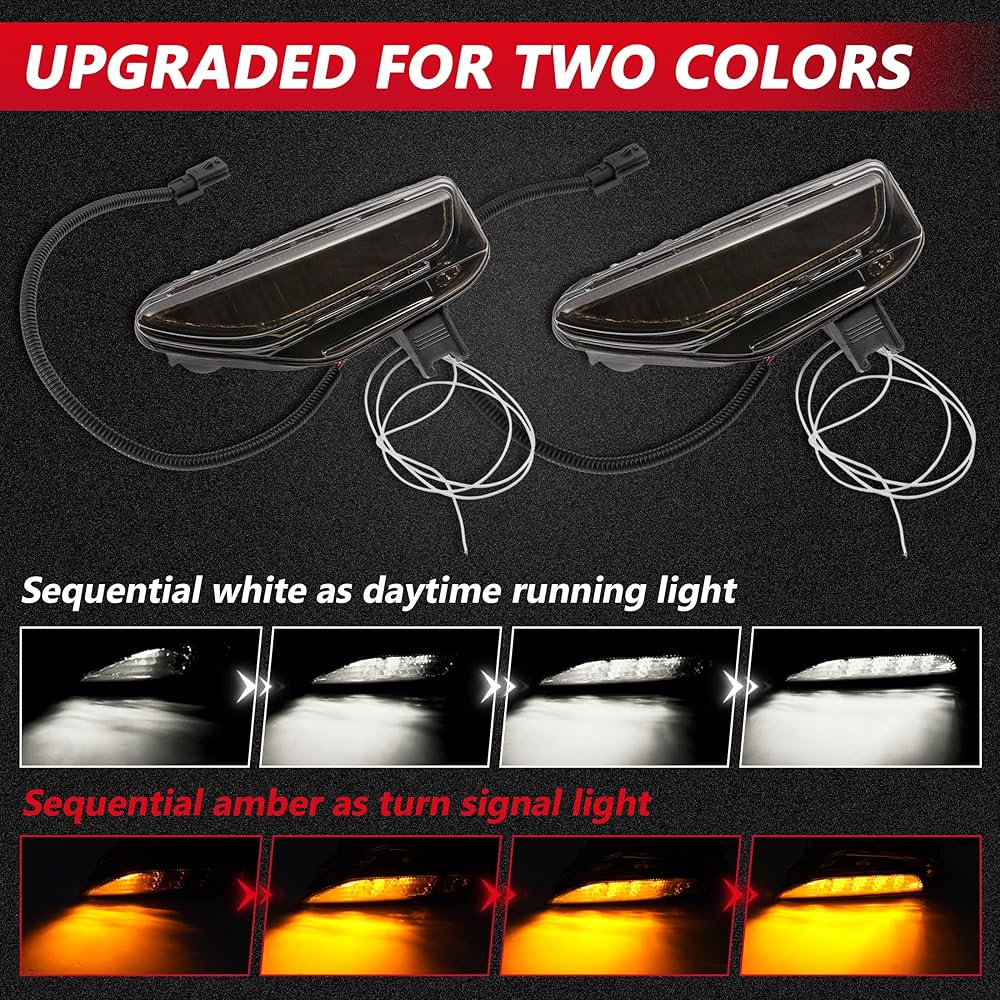 【تصميم جديد】معظم الألوان الكهرمانية متوفرة في السوق فقط. ولكن تمت ترقية مصابيح LED للمصد الأمامي ALAVENTE بلونين: أبيض متسلسل: ضوء تشغيل نهاري/كهرماني: ضوء إشارة الانعطاف. ليس فقط كضوء إشارة الانعطاف ولكن أيضًا كضوء ضباب، واستهلاك منخفض للطاقة ولكن سطوع عالٍ.