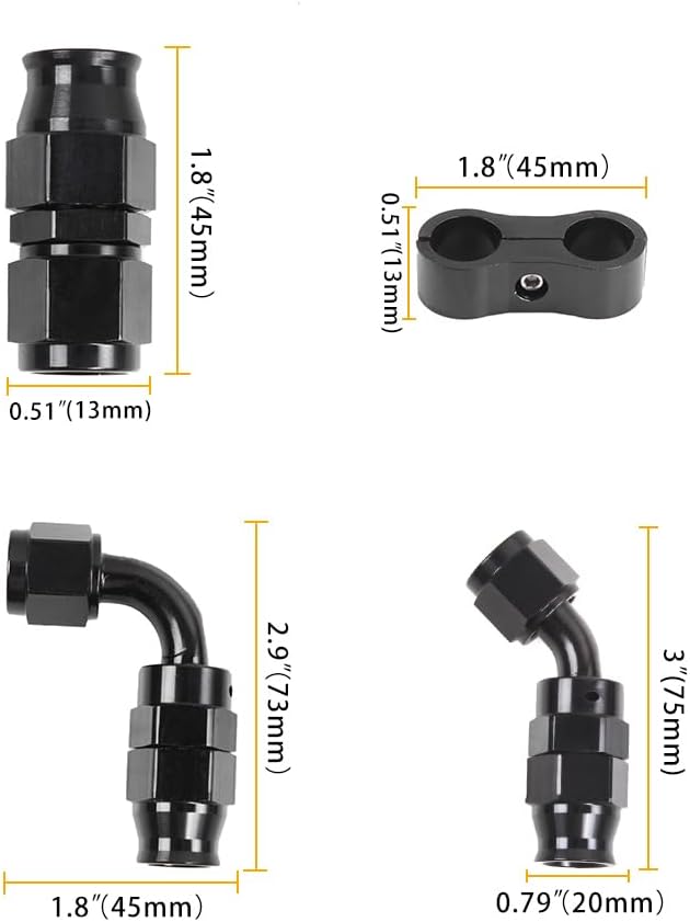 يشتمل على: خط وقود PTFE مجدول من النايلون بطول 12 قدمًا، طرفي خرطوم 90 درجة، طرفي خرطوم 45 درجة، طرفي خرطوم 0 درجة، مشبكين خرطوم، وشريط. تجهيزات خط الوقود مصنوعة من الألومنيوم T6061، مع لمسة نهائية مؤكسدة للحصول على قوة ومتانة عالية