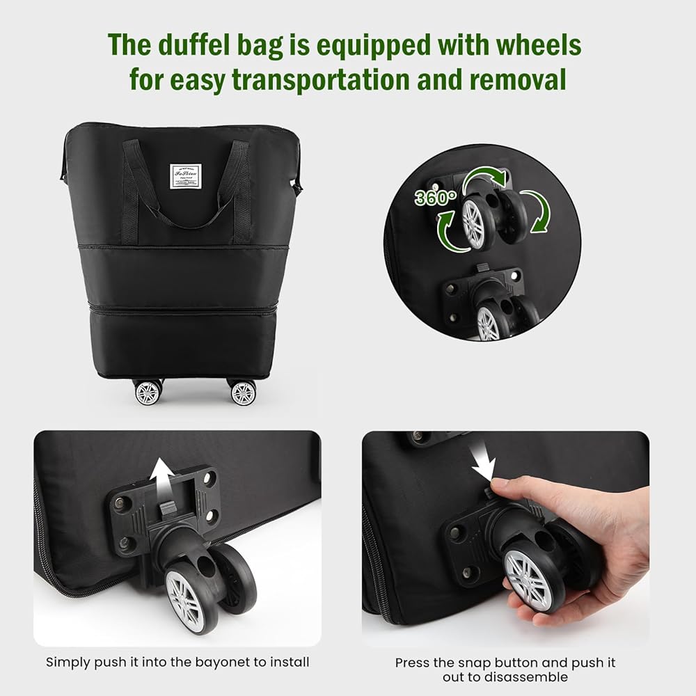 【أسطوانة قابلة للإزالة】حقيبة السفر التي لدينا مجهزة بأربع عجلات يمكن تركيبها أو إزالتها وفقًا لاحتياجاتك، مما يجعل رحلاتك أكثر راحة.
