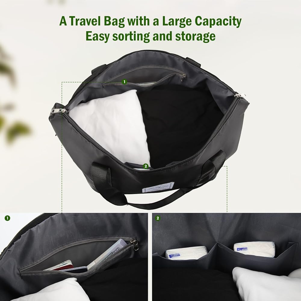 【سهولة الفرز والتخزين】تتميز حقيبة عطلة نهاية الأسبوع بجيب رئيسي، وجيب بسحاب، وجيبين داخليين صغيرين، وجيب خارجي لقضيب الأمتعة، مما يعزز راحة حمل متعلقاتك.