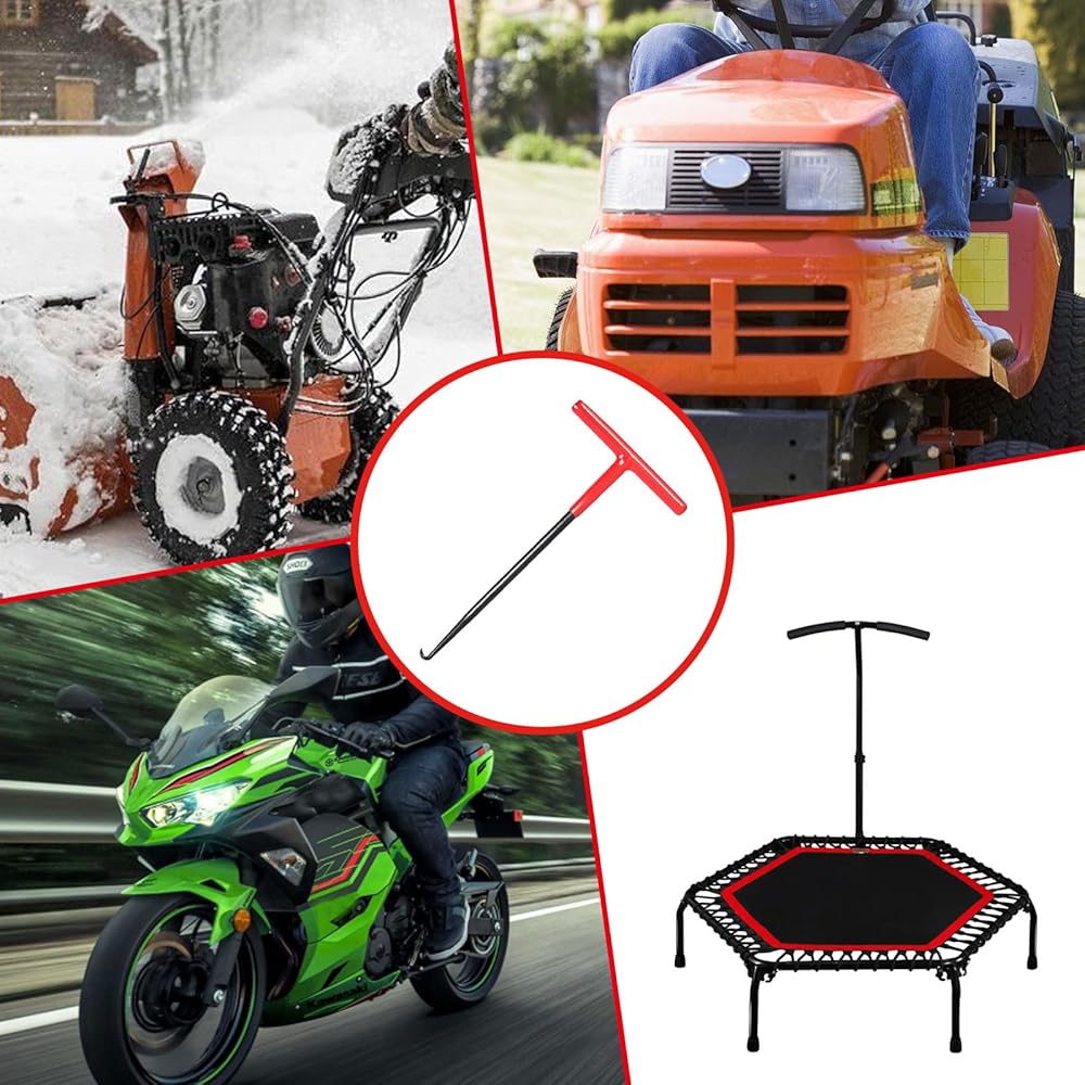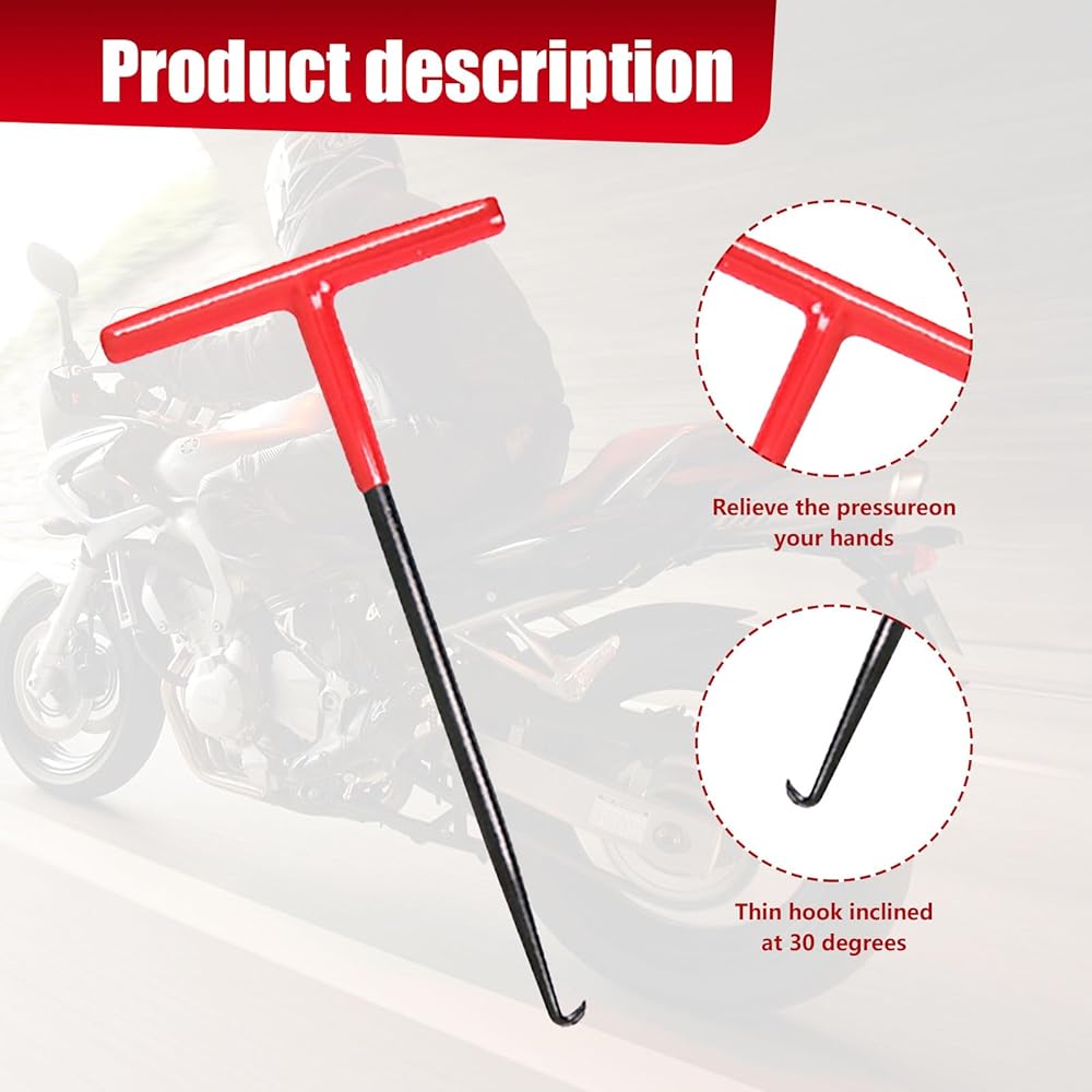 • Function: This exhaust pipe tension hook is used to detach and install exhaust springs as well as seat or tank retaining springs, cotter pins, side bracket springs and other parts. Makes the job of brake springs and headlight adjustment springs much easier, saving you from smashed knuckles and broken springs.