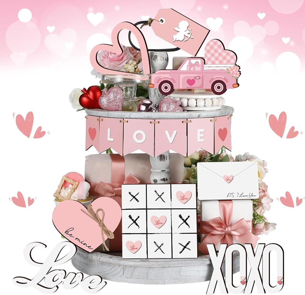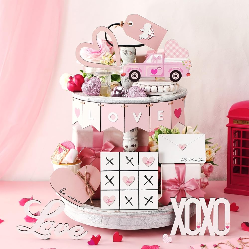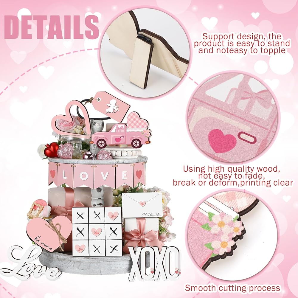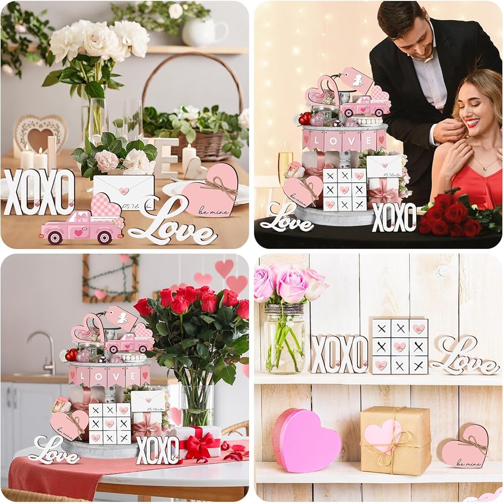 • Romantic design: our love tiered tray decorations can add a touch of beauty and romance to your home decor; Heart, [Love], [XOXO], truck, Cupid and other classic elements, with pink, vivid and delicate, to create a strong holiday romantic atmosphere