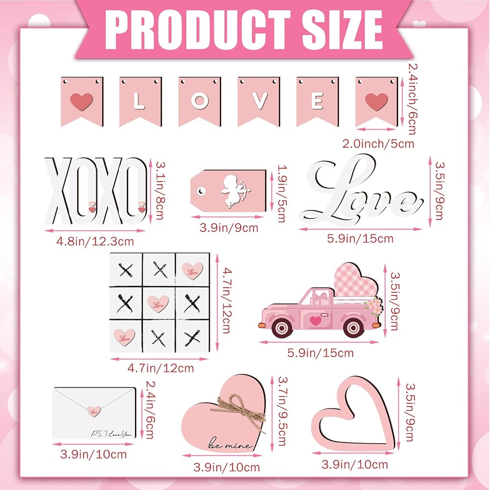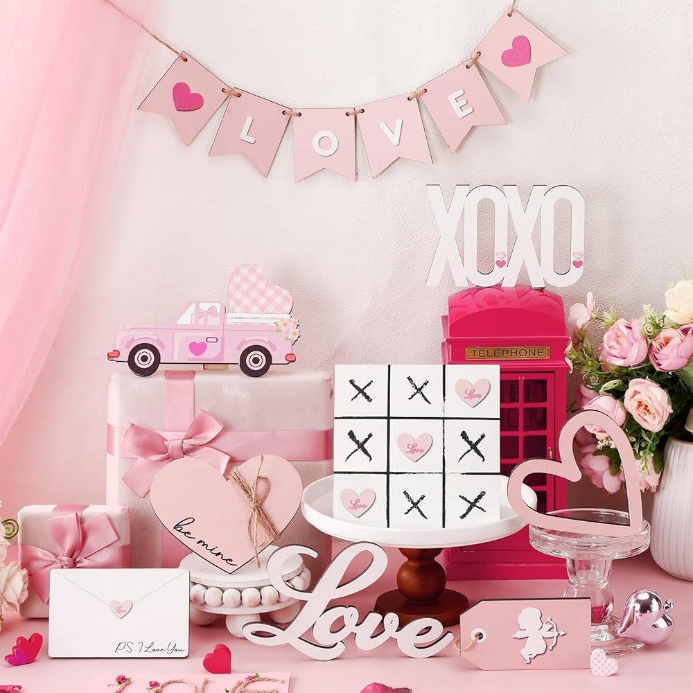 Umigy 14 قطعة عيد الحب مجموعة ديكور صينية متدرجة ديكور طاولة عيد الحب الخشبي ديكور طاولة عيد الحب الوردي القلب الحب مزرعة عيد الحب ديكور صينية متدرجة لديكور مطبخ عيد الحب