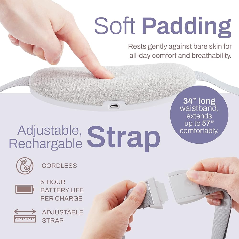 Relieve abdominal pain, alleviate period cramping, and reduce dysmenorrhea with our new & improved cordless heating pad. With a hollow design and wearable belt, this rechargeable pad comfortably fits your body's natural curvature, delivering targeted heating to affected areas for immediate therapeutic relief. Perfect for women of all different shapes and body types, with silky-soft deer velvet fabric and padding, it rests gently against bare skin for all-day comfort and breathability.