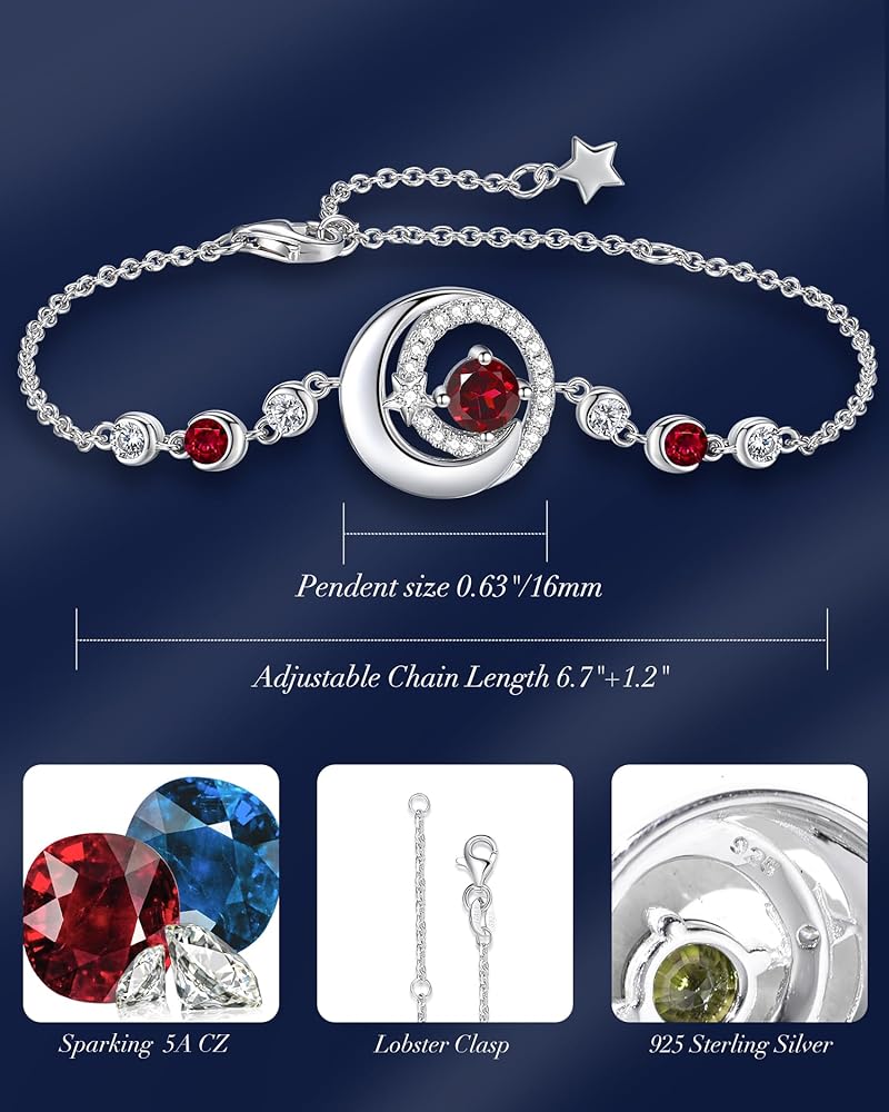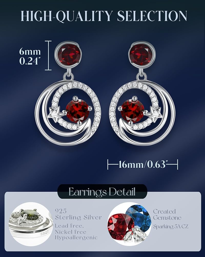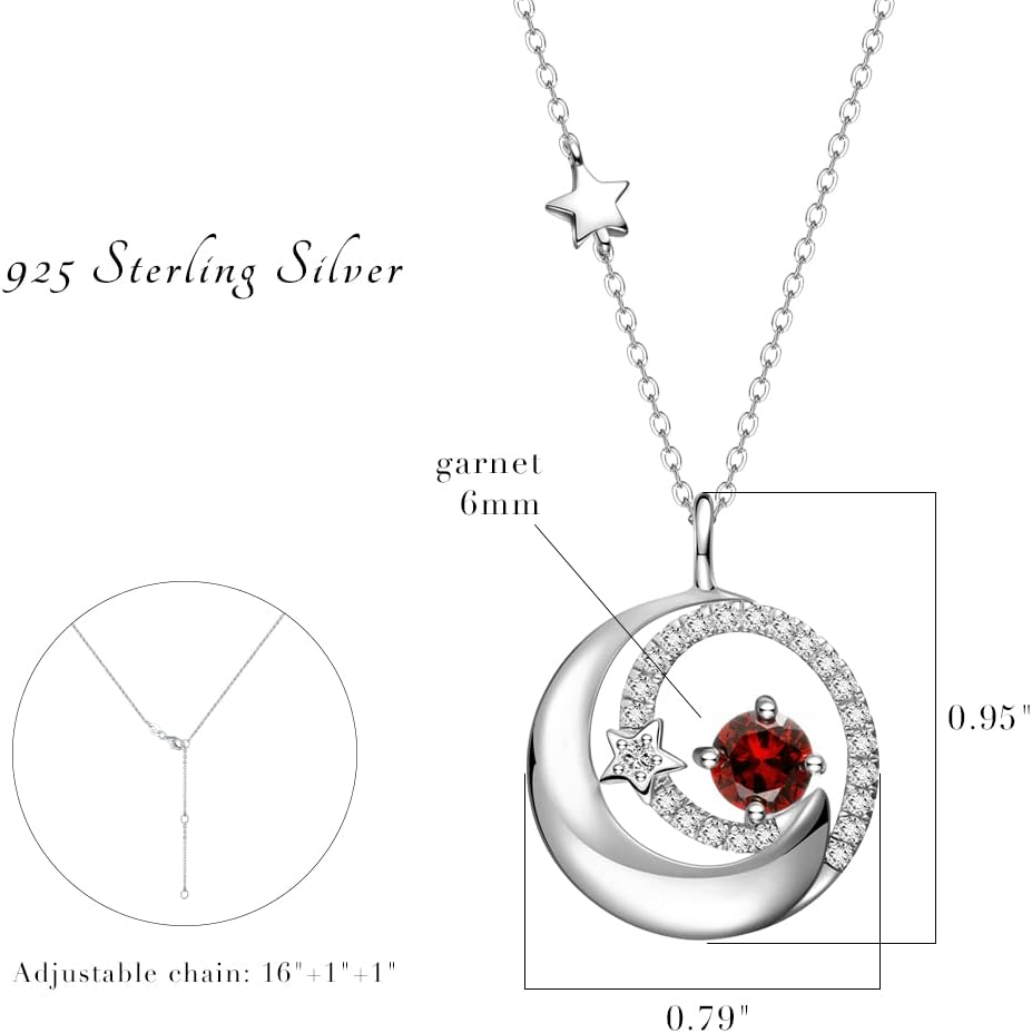 ❤FINE JEWELRY GIFTS FOR HER❤Celebrate the special woman in your life! This silver moon jewelry with created garnet and simulated diamonds is an unique and heartfelt fashionable jewelry. You can make the birthstone jewelry gift for your loved one. Our jewelry makes a sentimental surprise and a great gift for Birthday, Anniversaries, Valentine's Day, Mother's Day, Christmas, or Wedding celebration.