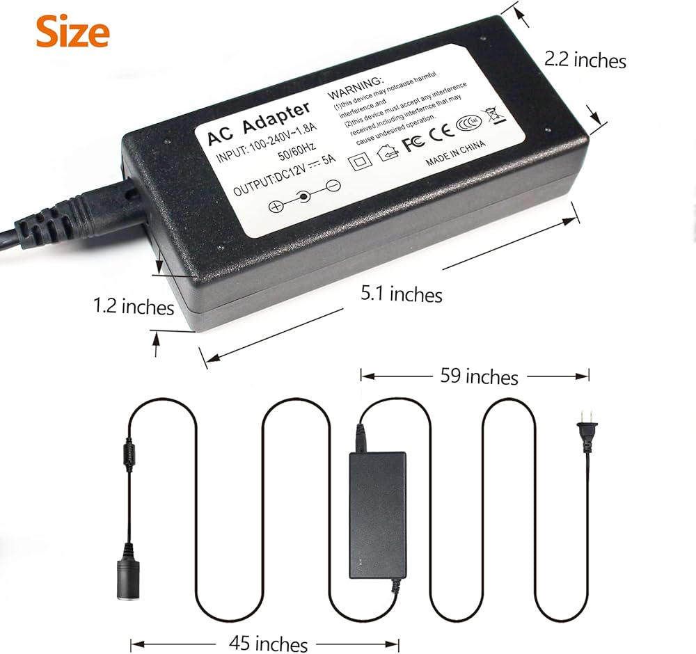 محول SOJOY AC 110-220 فولت إلى تيار مستمر 12 فولت 5 أمبير، مقبس ولاعة سجائر 2 دبوس مزود طاقة لمروحة السيارة ومنقي هواء السيارة وبطانية تسخين السيارة وأجهزة السيارة الأخرى