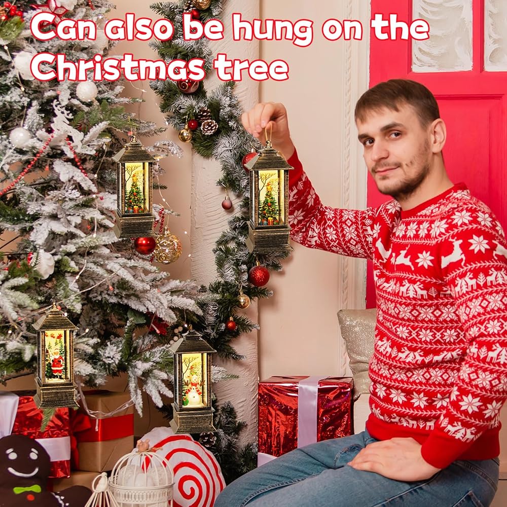 Product Includes: You will receive 4 pieces of Christmas lanterns in different styles, which are Santa Claus, cute snowman and Christmas tree; LED warm light design that adds a touch of magic to any space,giving you a warm feeling