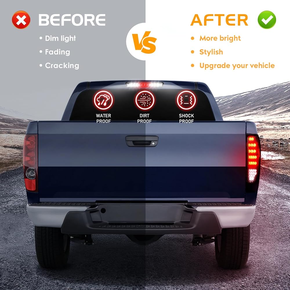 ضوء الذيل + طقم ضوء الفرامل الثالث مناسب لسيارة Chevy Colorado/GMC Canyon 2004-2012، مصباح إيقاف الضوء الخلفي للفرامل، عدسة دخان