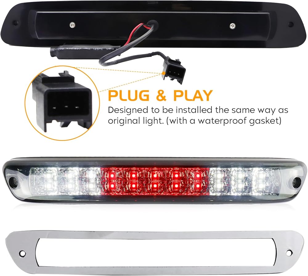 - مجموعة مصابيح الفرامل الثالثة الكل في واحد: ضوء فرامل LED + وظيفة إضاءة الشحن (LED كامل، لا حاجة إلى مصابيح إضافية).