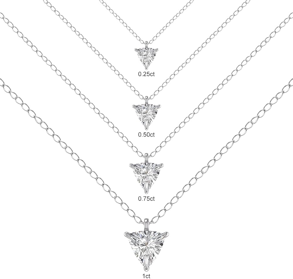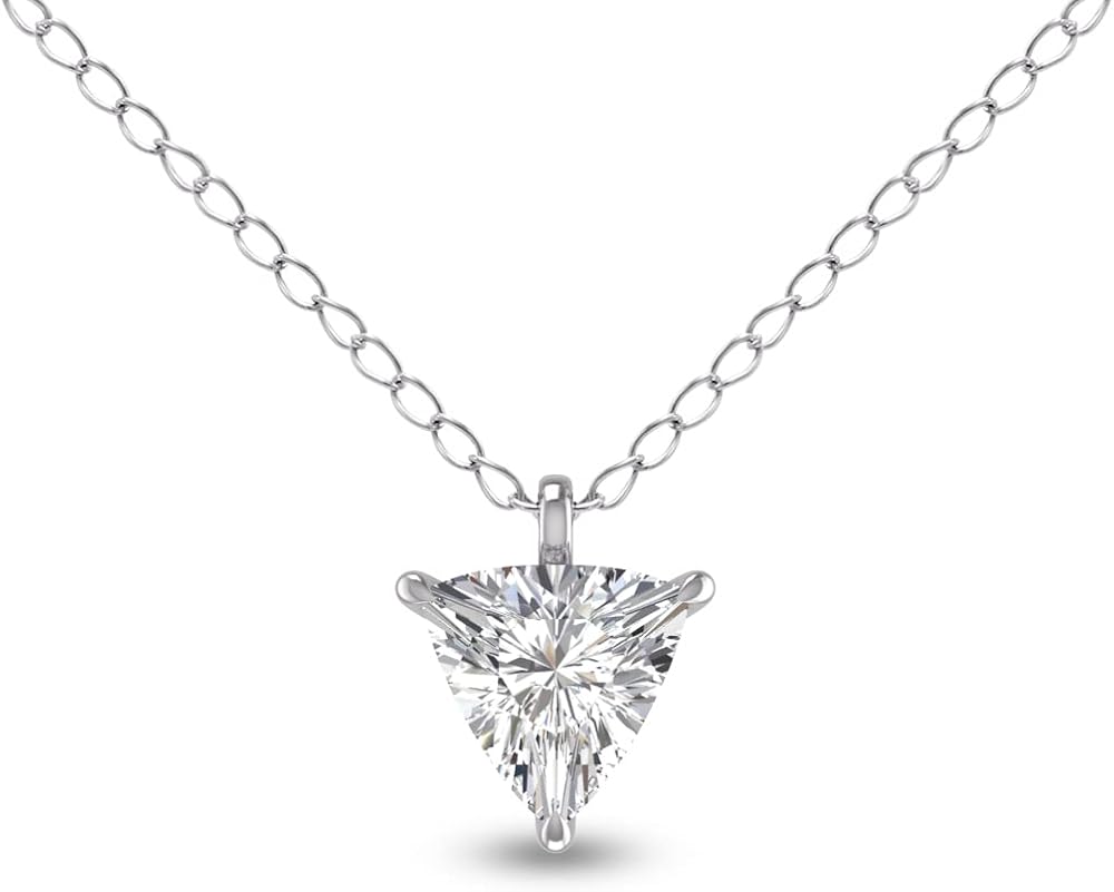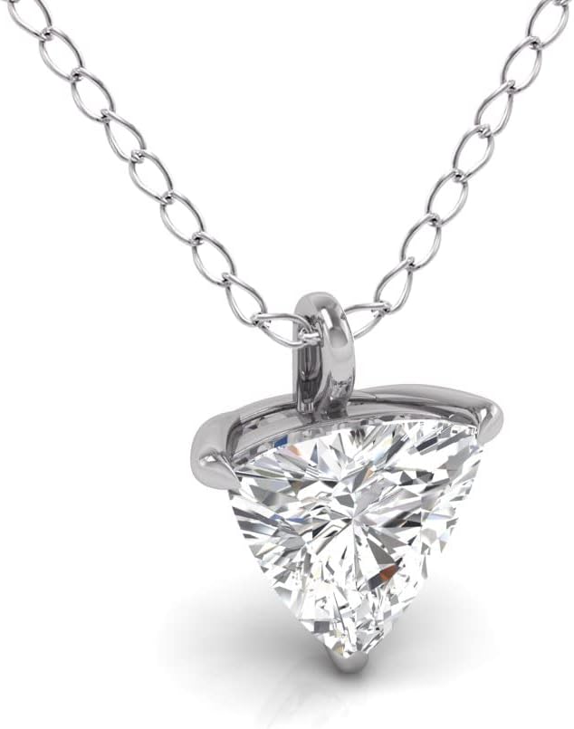 هذه القلادة الماسية الخالدة المزروعة في المعمل هي إكسسوار ملفت للنظر سيلفت الأنظار في أي مناسبة. تم تصميم هذه القلادة بخبرة من الذهب الأبيض عيار 14 قيراط، وتتميز بماسة مشعة على شكل تريليون قيراط بوزن 1/2 قيراط تستقر بشكل أنيق وسلسلة ربط آمنة مقاس 18 بوصة. لا توجد مقارنة عندما يتعلق الأمر بالتألق غير المشروط لهذه القطعة، وإعدادات الشوكة المتينة، والخطوط المقطوعة النظيفة قزحية الألوان.