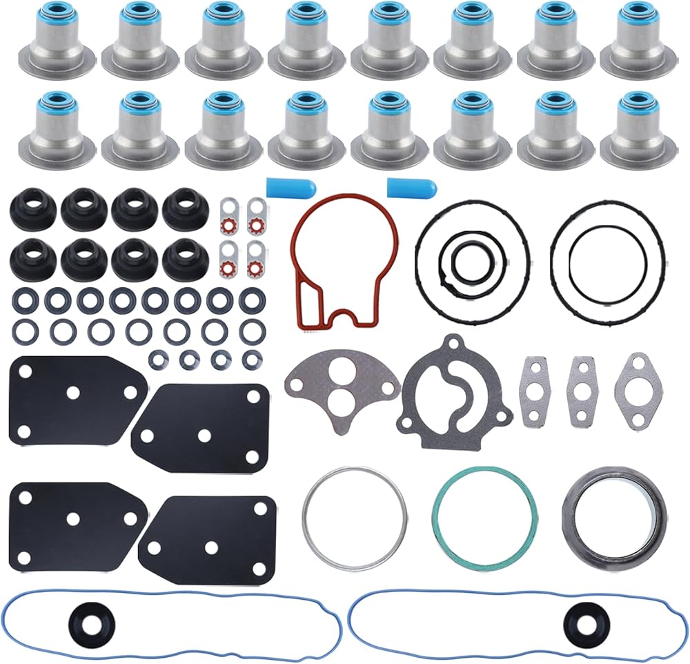 • تشمل العبوة: حشوات الرأس، وحشيات غطاء الصمام، وأختام جذع الصمام، وحشيات مشعب السحب والعادم، وختم عمود الحدبات الأمامي، وحلقات على شكل حرف O، وحشيات صغيرة أخرى، و30 مسمارًا لرأس الأسطوانة، و8 رافعات أسطوانة هيدروليكية AFM، و8 رافعات أسطوانة هيدروليكية NON-AFM و 4 صينية رافع بمسامير.