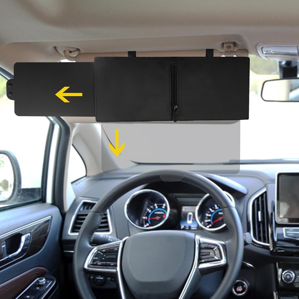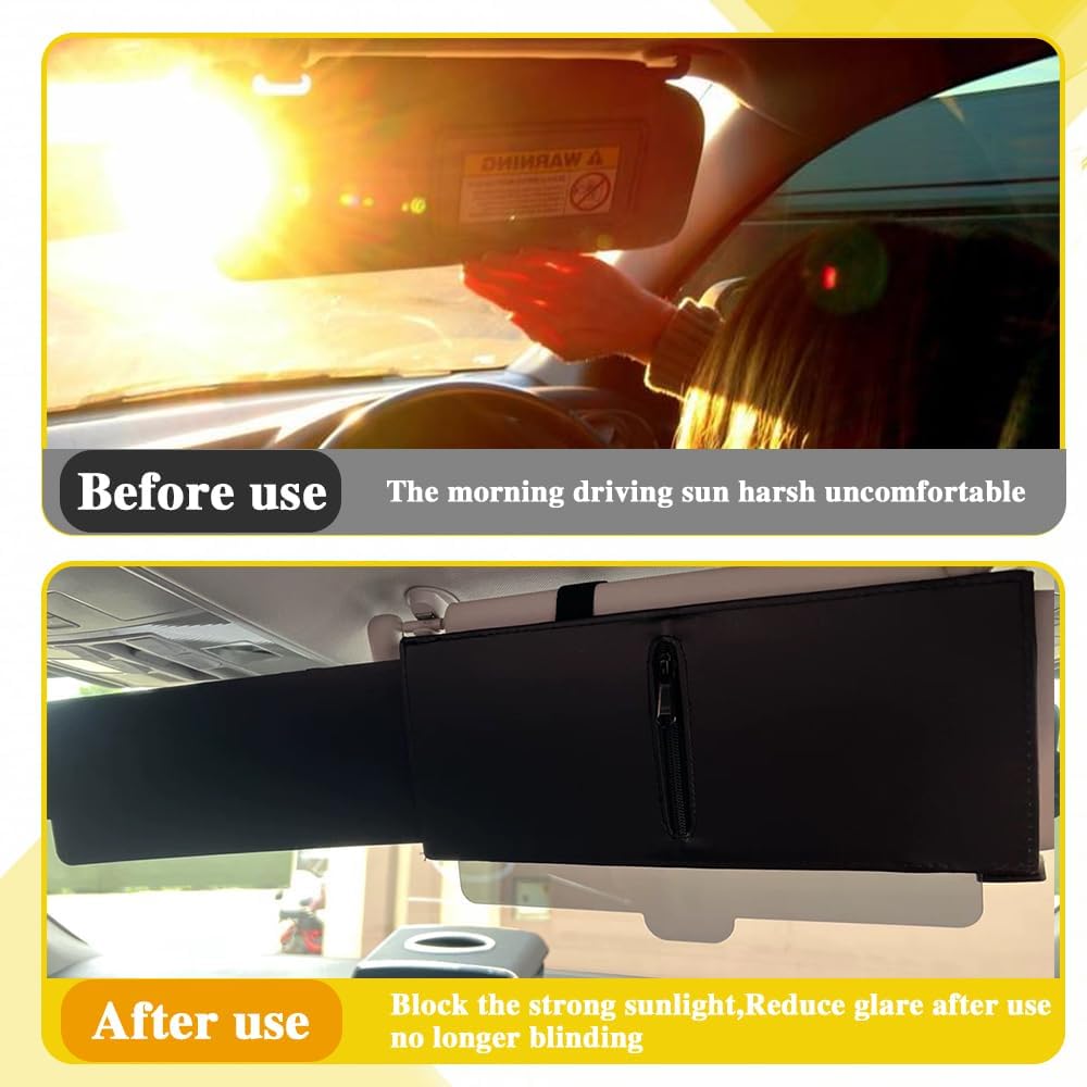 [Exquisite design] : This sunvisor extension attachment for car visor is a lengthened handle design, equipped with a zipper, so that you can pull out the light block without getting stuck. It can be easily folded, it does not need to be removed when not in use, it can be stored on the car visor, easy to use at any time, is a highly practical auto accessory.