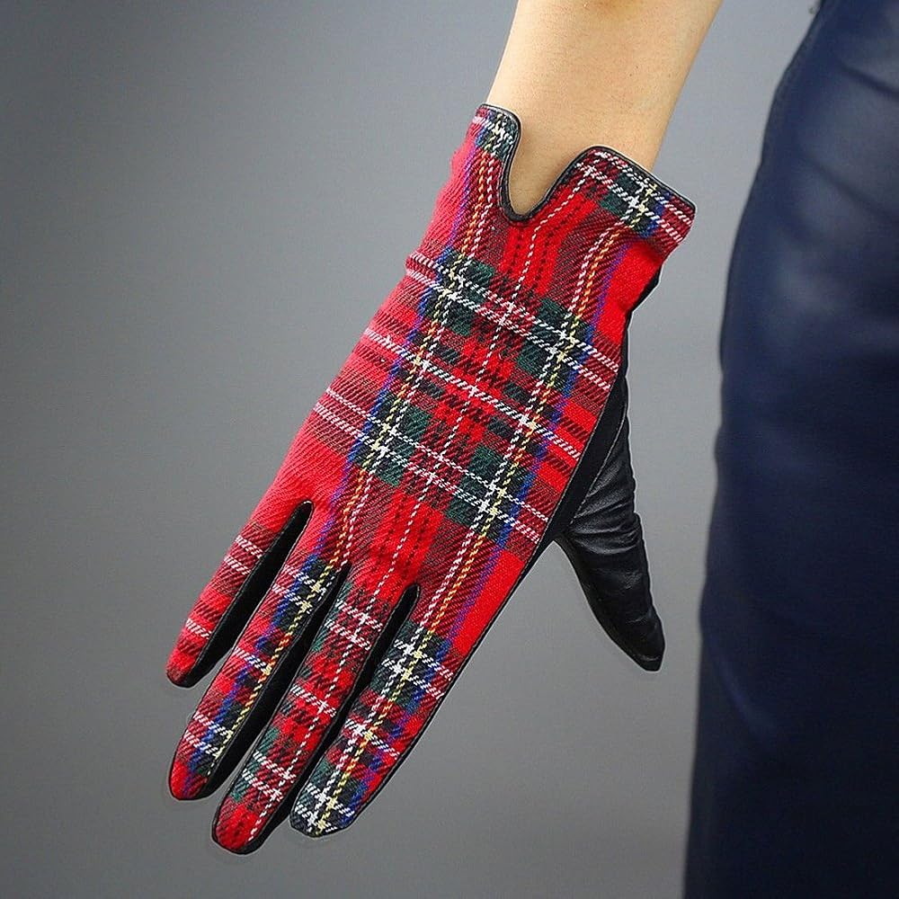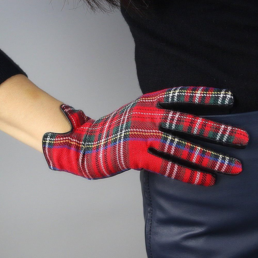 قفازات TECH GLOVES منقوشة من الجلد الطبيعي معصم طويل من صوف التويد باللون الأحمر الاسكتلندي