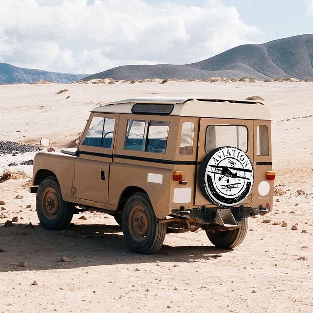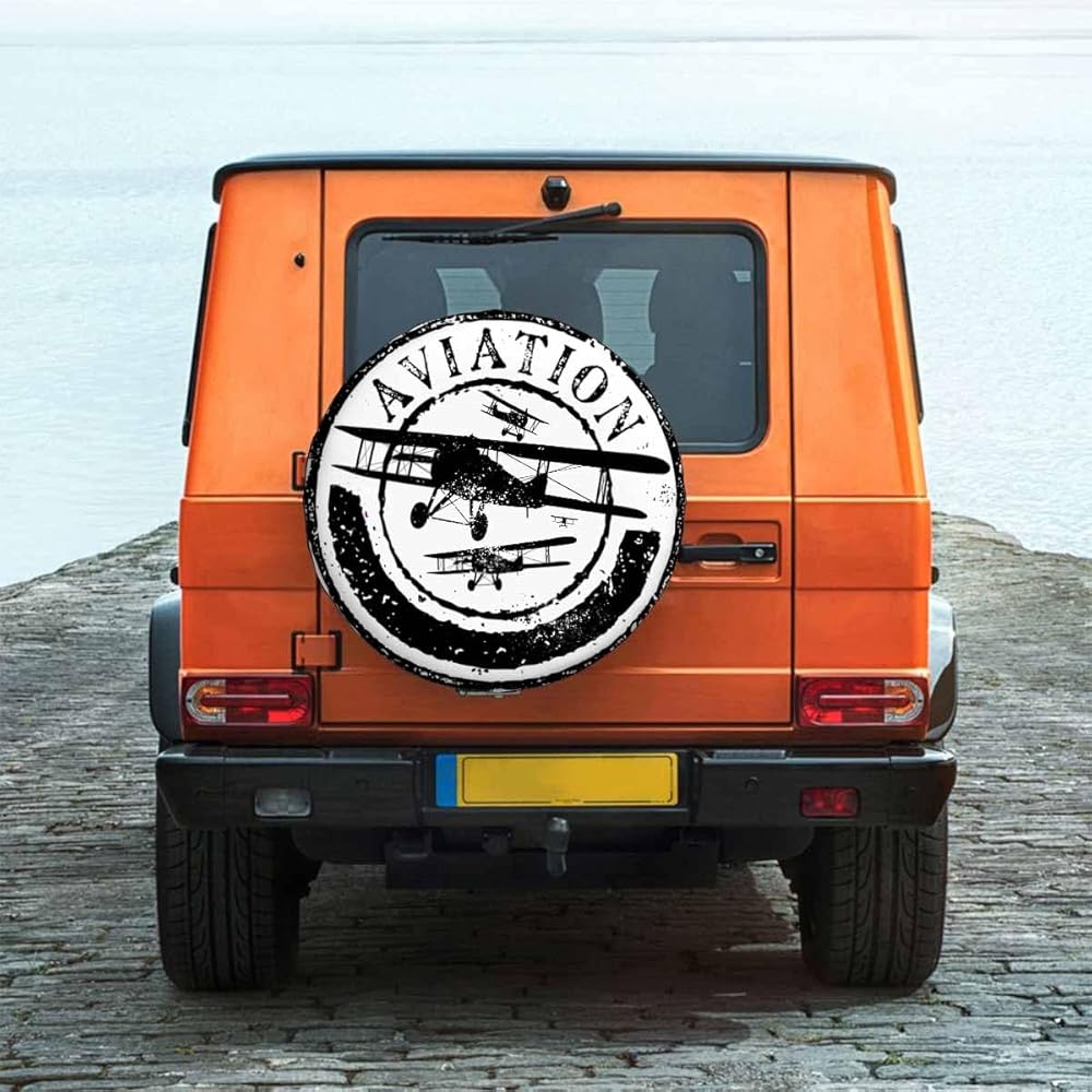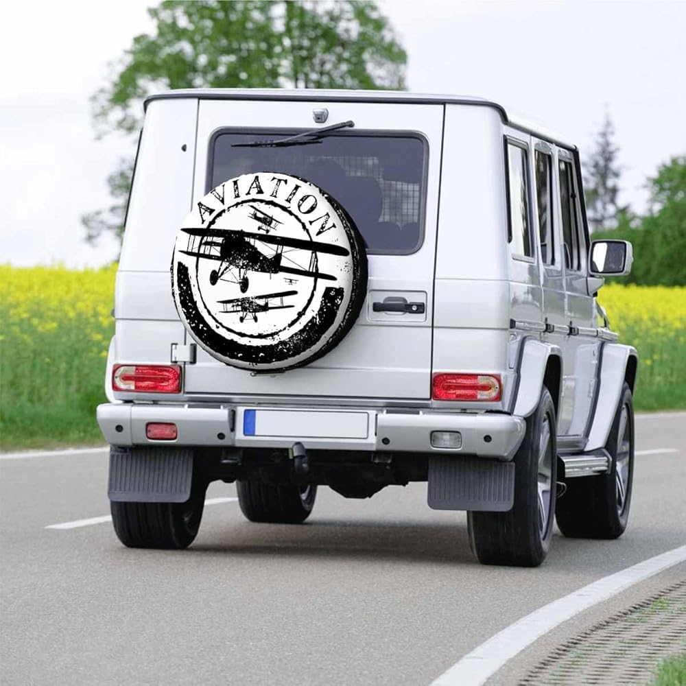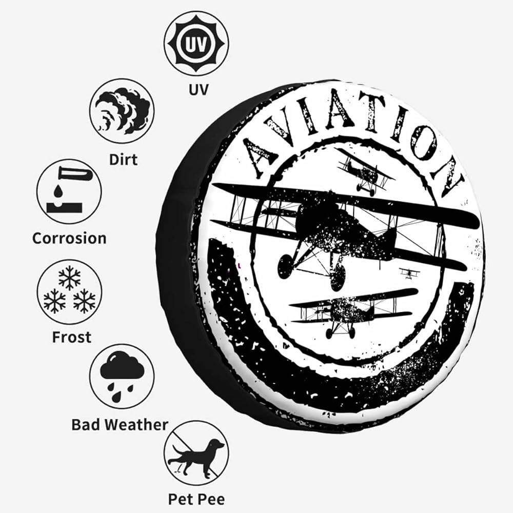 غطاء إطار احتياطي لختم الطائرة لطائرة مقطورة RV مع أجنحة طيران السماء وأجنحة الطيران النفاثة، حافظة إطار بوليستر مقاومة للطقس لجميع السيارات وسيارات الدفع الرباعي والسفر مقاس 15 بوصة