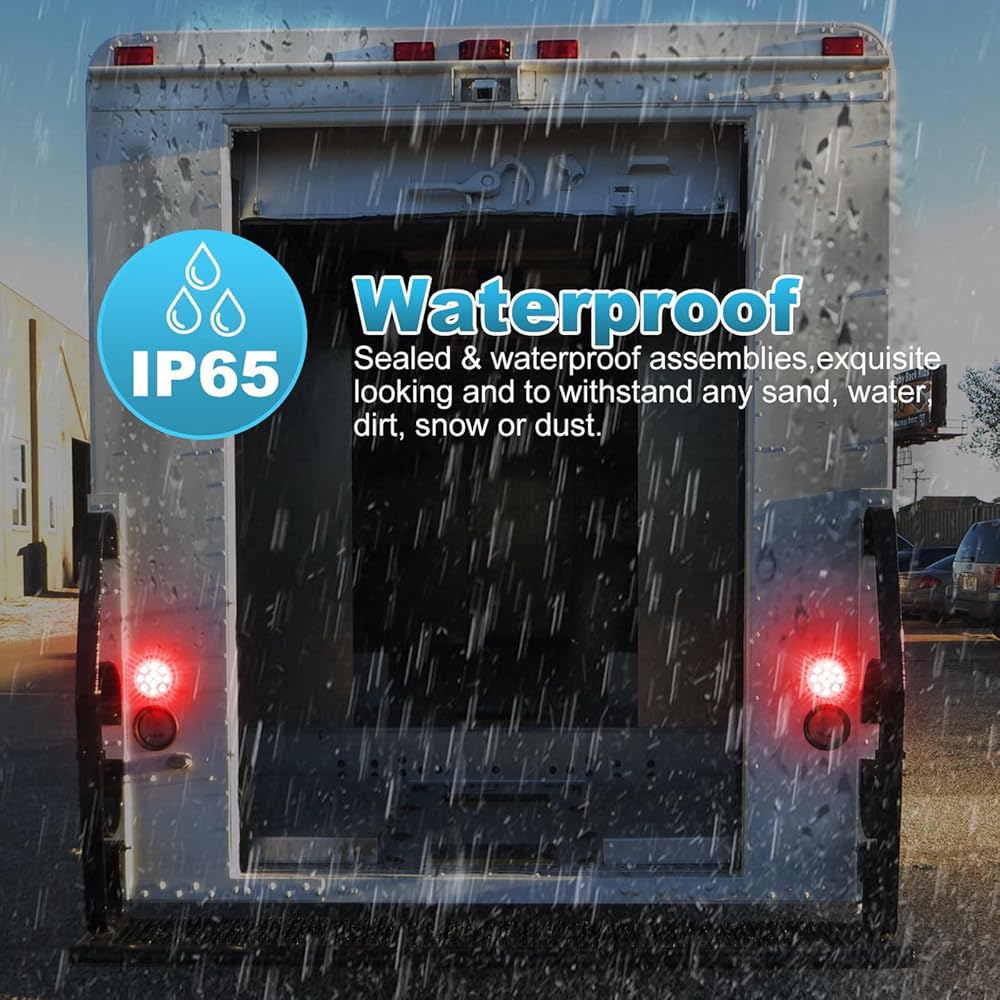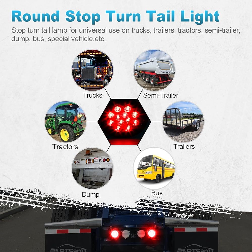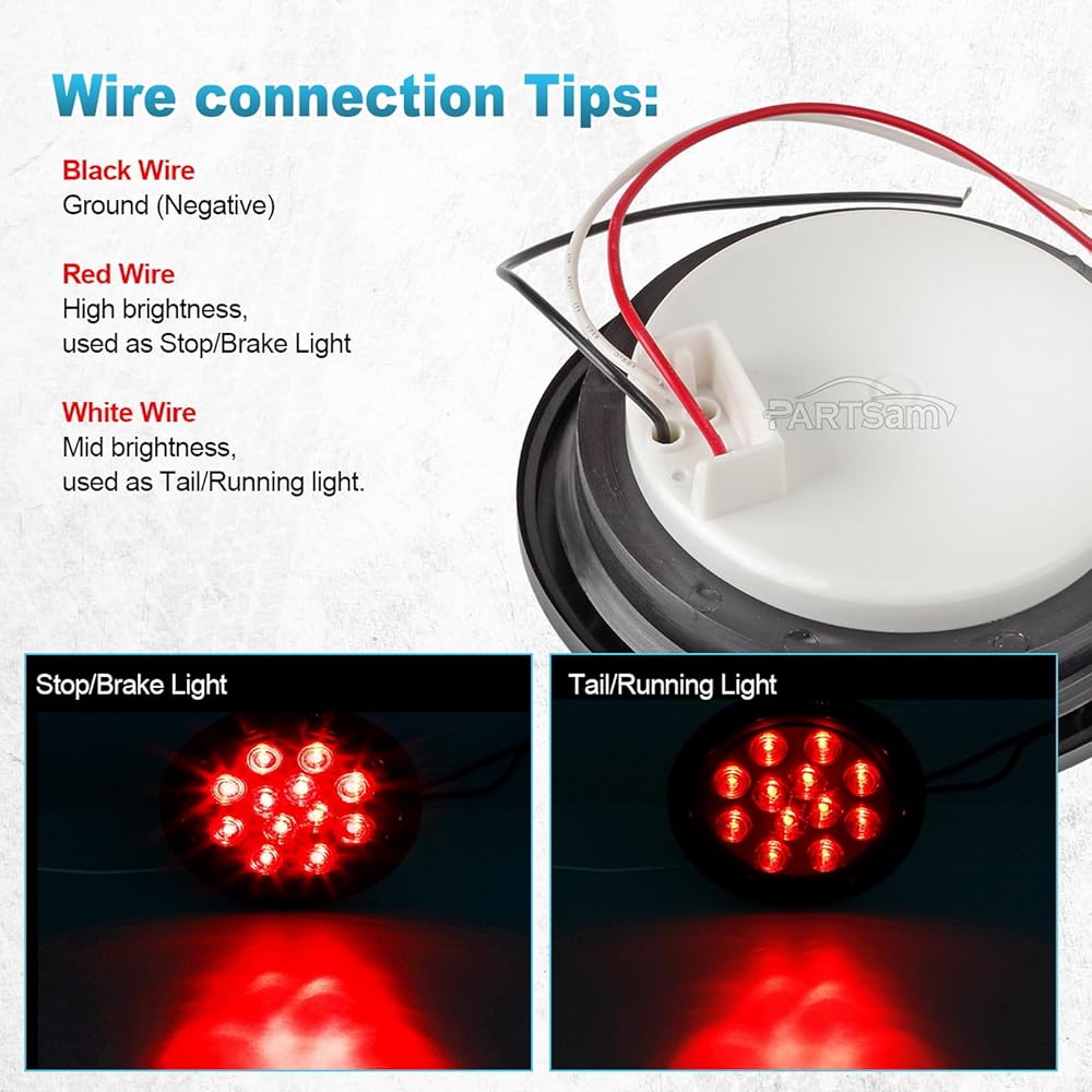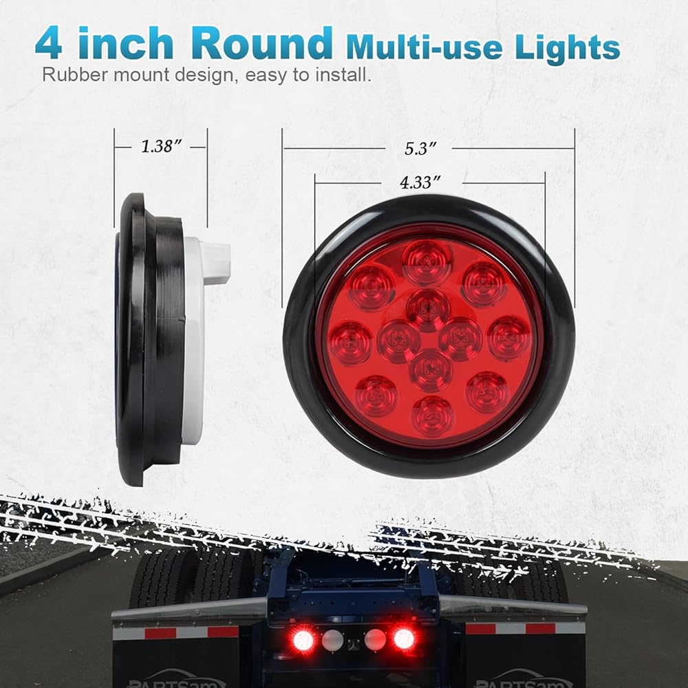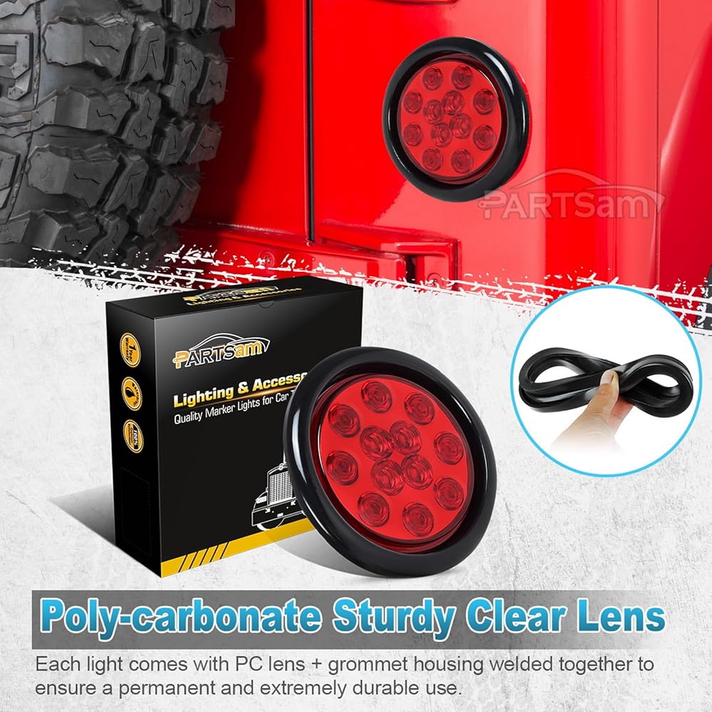 Partsam 2 × 4 بوصة مصابيح LED مستديرة للمقطورة 12 مصباح LED توقف الانعطاف لعلامة الذيل أضواء التخليص عدسة حمراء ضوء أحمر مع حلقات مطاطية 12 فولت