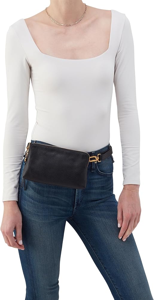 Go hands-free and travel light with the HOBOFern Slim Belt Bag. Crafted from leather, this bag features zippered closure, removable and adjustable solid leather single strap, three interior credit card slots, and one interior zippered pocket.