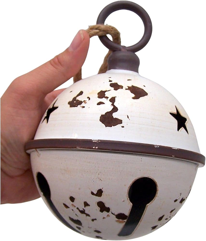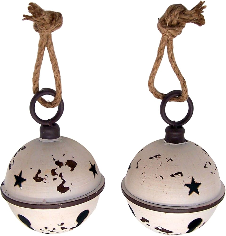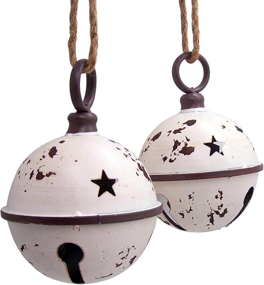 أجراس عيد الميلاد المستديرة باللون الأبيض الريفي، زينة للعطلات، مجموعة من قطعتين، 15.24 سم