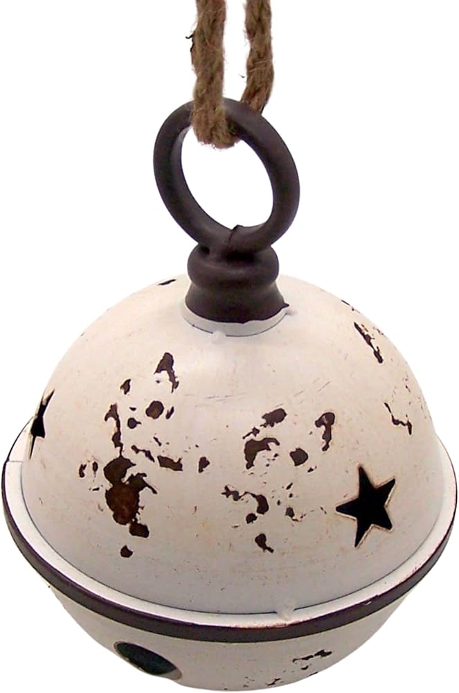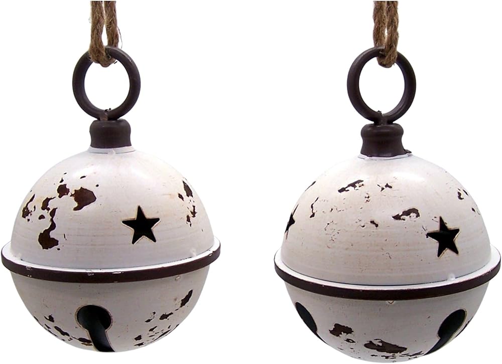 - مجموعة من أجراس عيد الميلاد تتميز بطلاء أبيض متعثر وتصميم نجمة