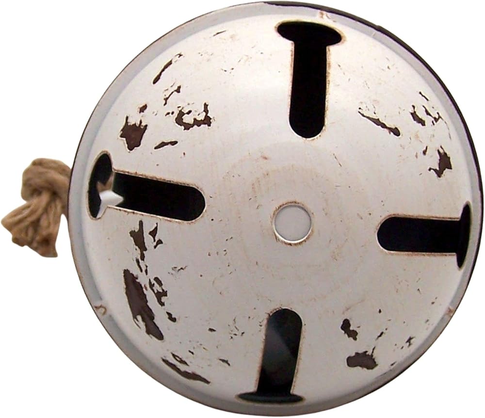 - مصنوعة من مادة القصدير والحبال ويبلغ مقاسها 15.24 سم قطرًا × 33.51 سم ارتفاعًا