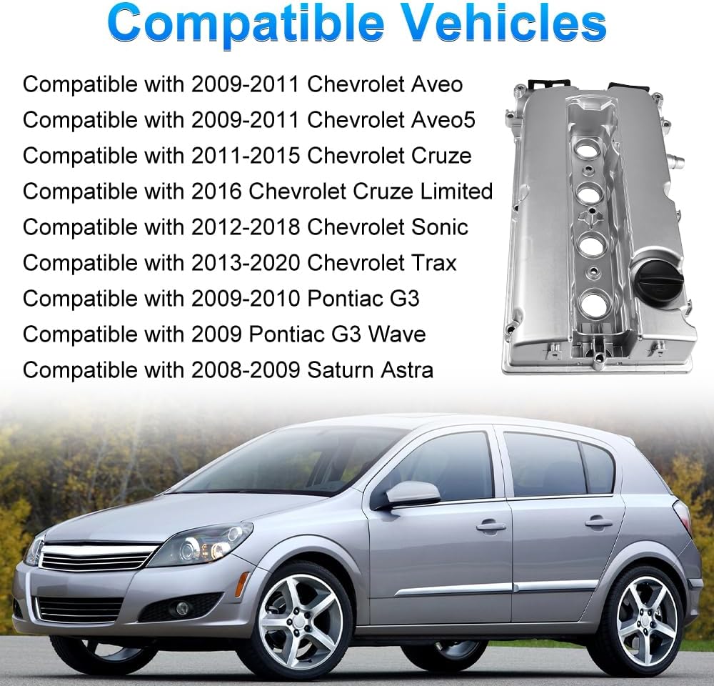 • Applicable Models: The engine valve cover kit compatible with 2009-2011 Chevrolet Aveo, 2009-2011 Aveo5, 2011-2015 Cruze, 2016 Cruze Limited, 2012-2018 Sonic, 2013-2020 Trax. Compatible with 2009-2010 Pontiac G3, 2009 Pontiac G3 Wave, 2008-2009 Saturn Astra
