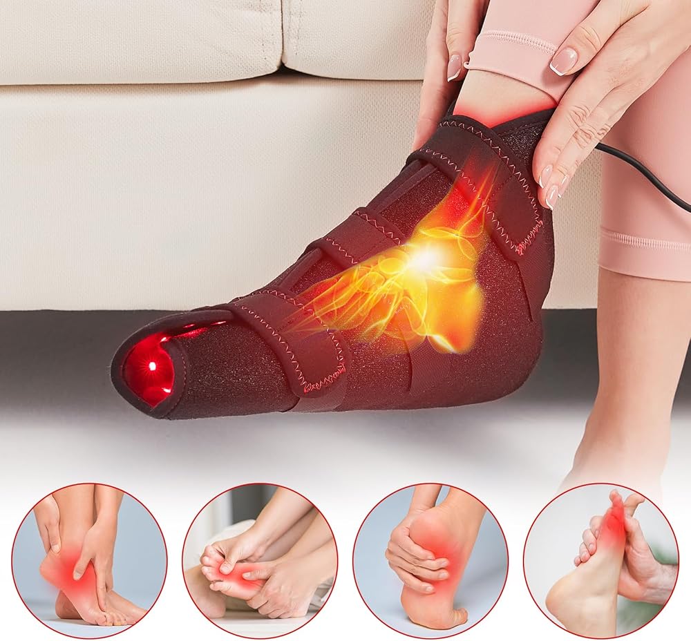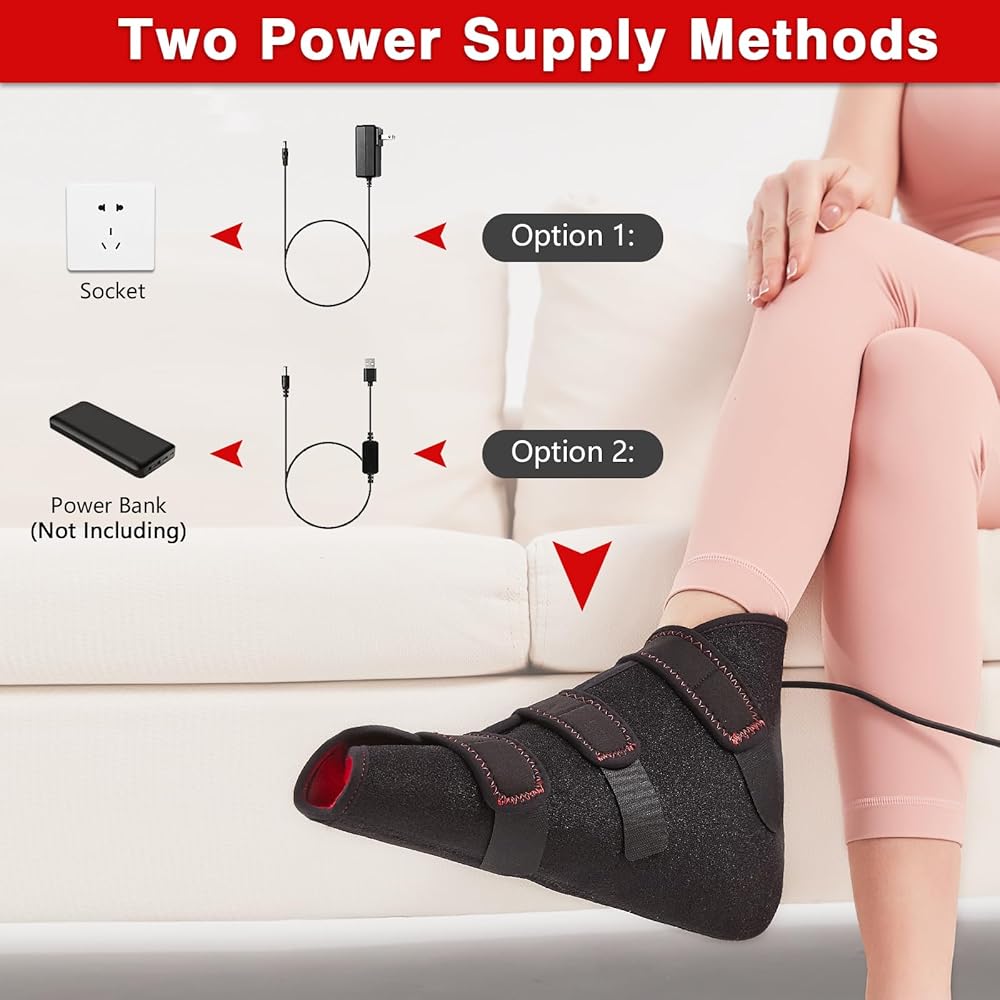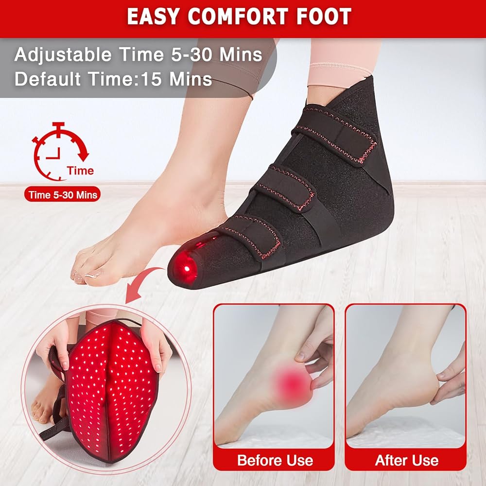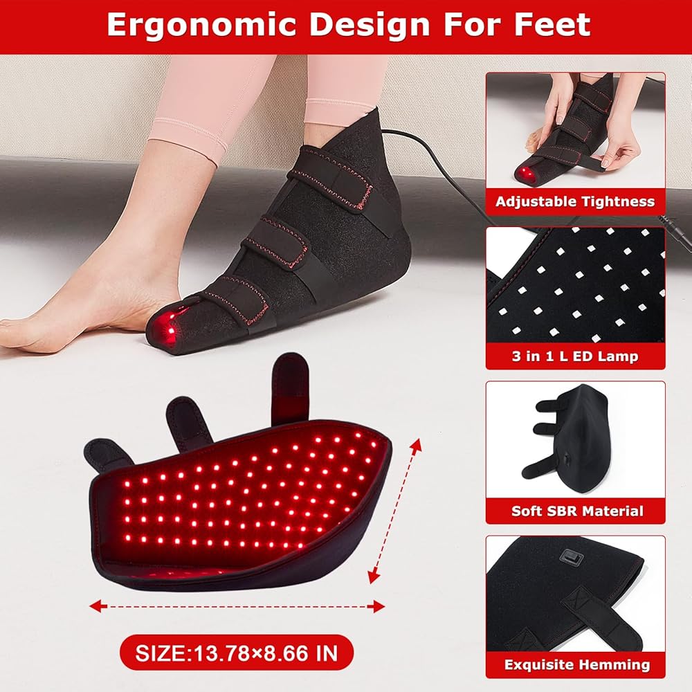 شريط سحري قابل للتعديل ونسيج ناعم: هذا الضوء الأحمر للقدم مصنوع من مادة خفيفة الوزن وآمنة، ويمكن تعديل الشريط السحري حسب الرغبة مع التصاق قوي، لذلك لا داعي للقلق بشأن أن تكون قدميك خانقة للغاية.