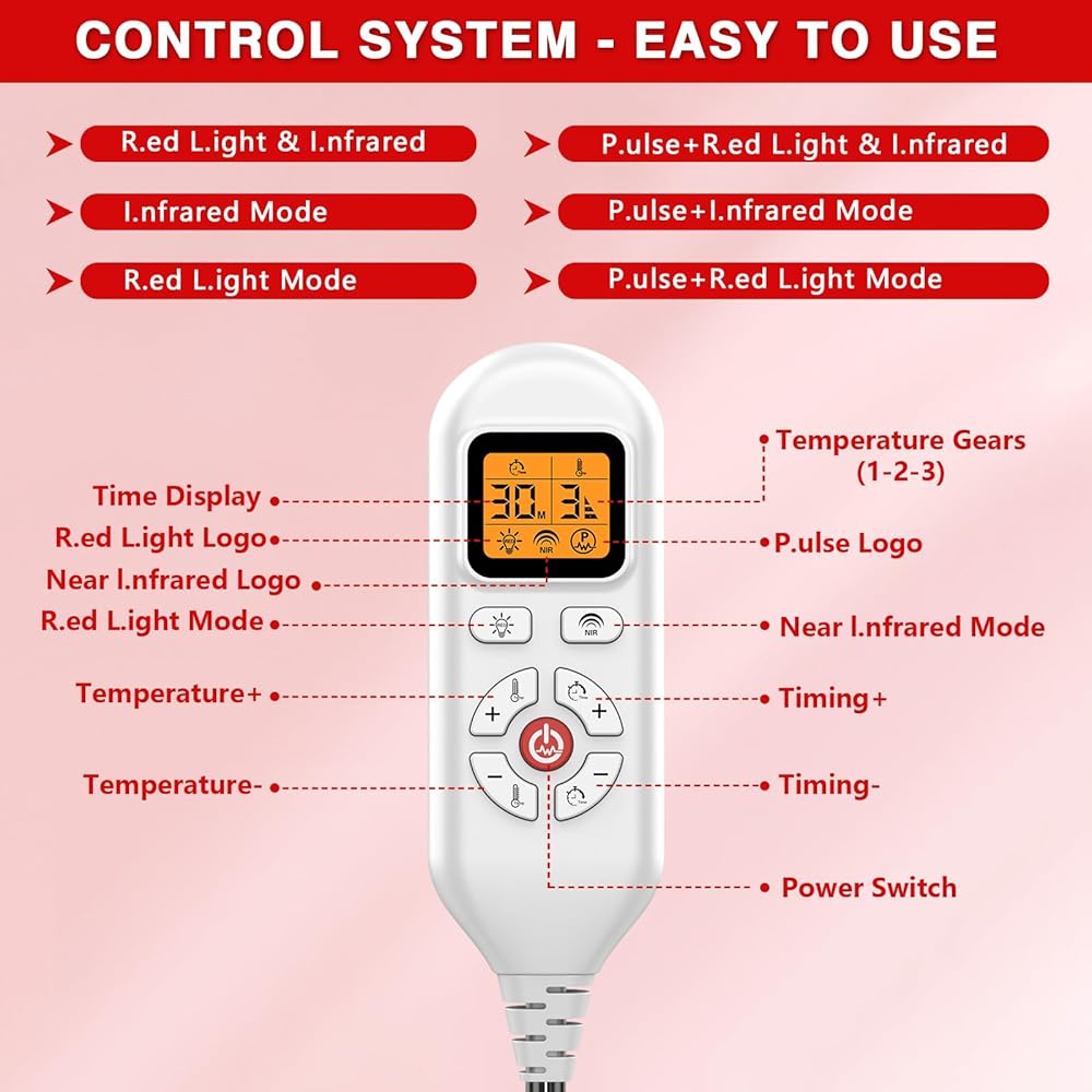 تشغيل بسيط ومحمول: وسادة تسخين سريعة للحفاظ على دفء قدميك! مزيج من 660 نانومتر r.ed l.ight + 850 نانومتر N.IR p. يخترق حل مشكلاتك. 6 أوضاع عمل، اختر الوضع الذي يناسبك