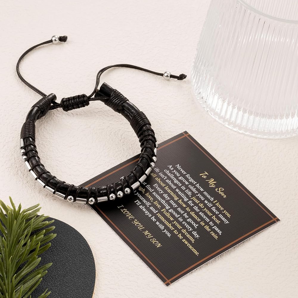 • 【هدايا للابن/الحفيد من الأم/الأب/الجدة/الجد】: امنح ابنك/حفيدك هذا السوار لتشجيعه على عدم الاستسلام أبدًا وتذكيره بأنك ستحبه دائمًا. إنها ليست مجرد قطعة من المجوهرات الأنيقة ولكنها تحمل أيضًا رسالة من القلب ستذكر ابنك/حفيدك برباطك الخاص في كل مرة يرتديها.