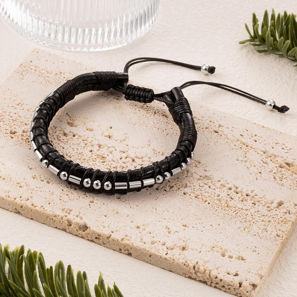 أساور جلدية للرجال والأولاد Brother Morse Code "I LOVE YOU" أساور جلدية قابلة للتعديل أساور أفضل الهدايا لابن حفيد الرجال والأولاد