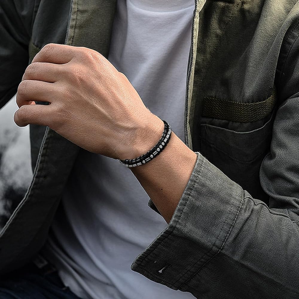 • 【الخامة والحجم】مصنوعة من الفولاذ المقاوم للصدأ، مادة جلدية أصلية. إنها مصنوعة بشكل جيد وقوية ومتينة وصديقة للبشرة ولا تسبب الحساسية. ناعم ومريح للارتداء اليومي. يمكن مطابقته بسهولة مع الملابس اليومية المختلفة، ومناسب لأي مناسبة. يبلغ مقاس السوار الجلدي حوالي 7 سم - 14.5 سم، ويناسب معظم معصم الرجال. مشبك الحبل القابل للتعديل يجعل من السهل ارتداء السوار وخلعه.