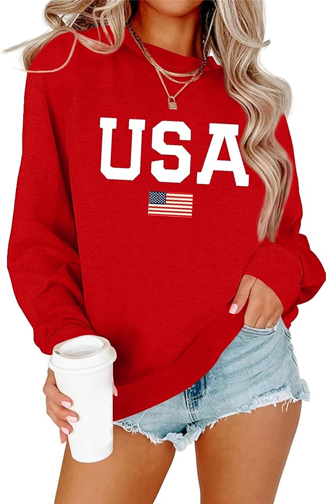 المزايا: قمصان علوية بنمط علم الولايات المتحدة الأمريكية، أكمام طويلة كاجوال، رقبة دائرية، بلوفر فضفاض، بلوفر بقلنسوة كبير الحجم، سويت شيرت برقبة مستديرة، قمصان بلوفر مطبوعة بحروف الولايات المتحدة الأمريكية، ملابس أمريكية، أكمام منسدلة على الكتف، ملابس نسائية للخريف والشتاء. إنه ضروري لخزانة ملابسك في الخريف والشتاء