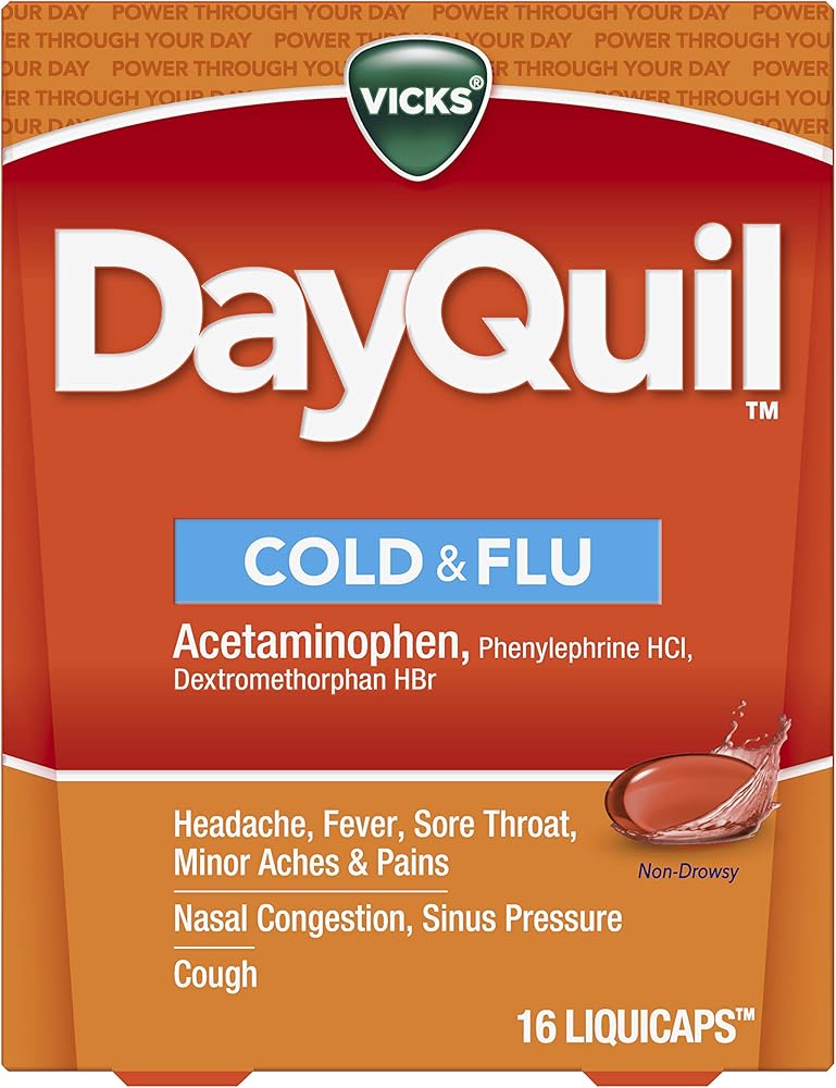 NON-DROWSY, DAYTIME COLD & FLU RELIEF. DayQuil Cold & Flu Liquicaps temporarily relieve common cold & flu symptoms so you can get on with your day
